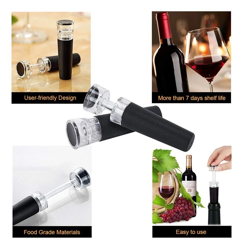 Вакуумная пробка для вина может удалить воздух из вашей бутылки вина, чтобы сохранить дегустацию вина новой до 12 дней. Ваше вино будет хорошо сохранено. Это также отличный коктейль, виски, пробка для шампанского.