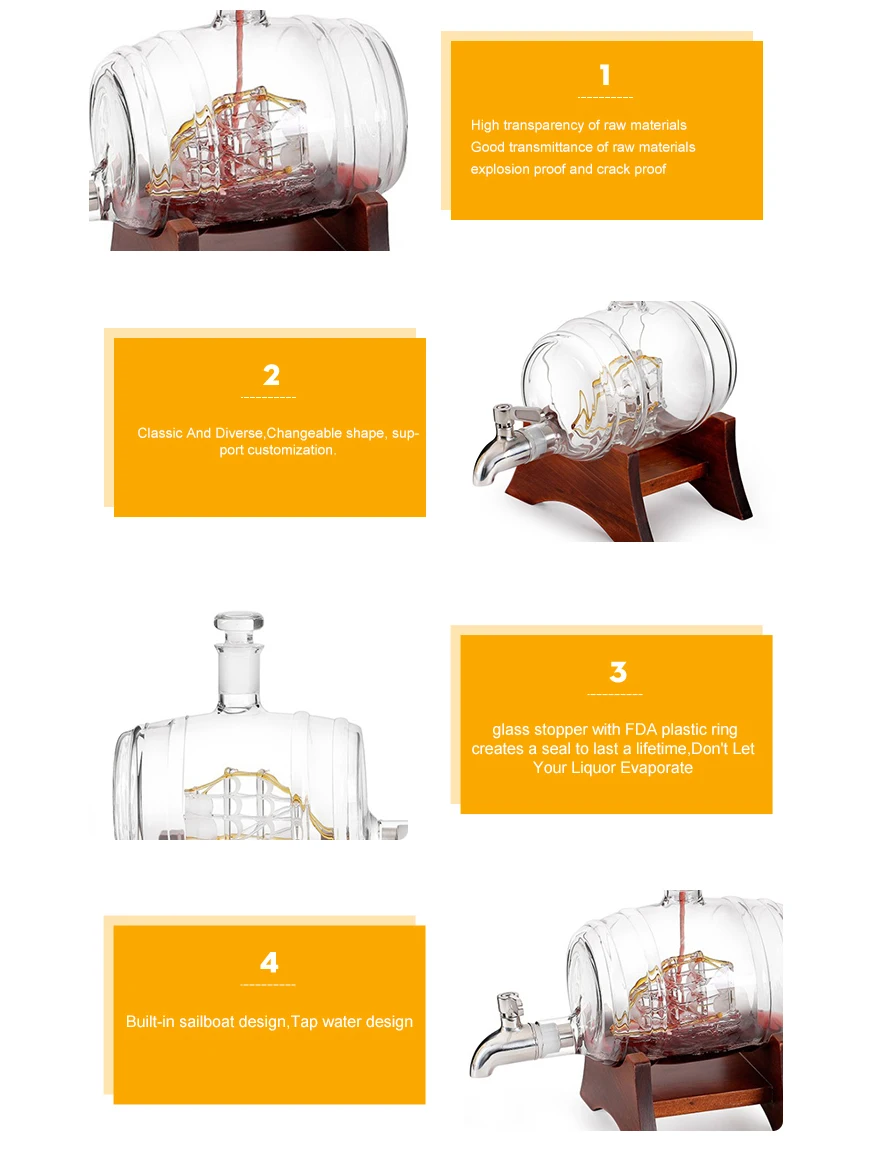 1000 мл деревянная бочка в форме бутылки ликера, пустые стеклянные винные бутылки для водки и виски