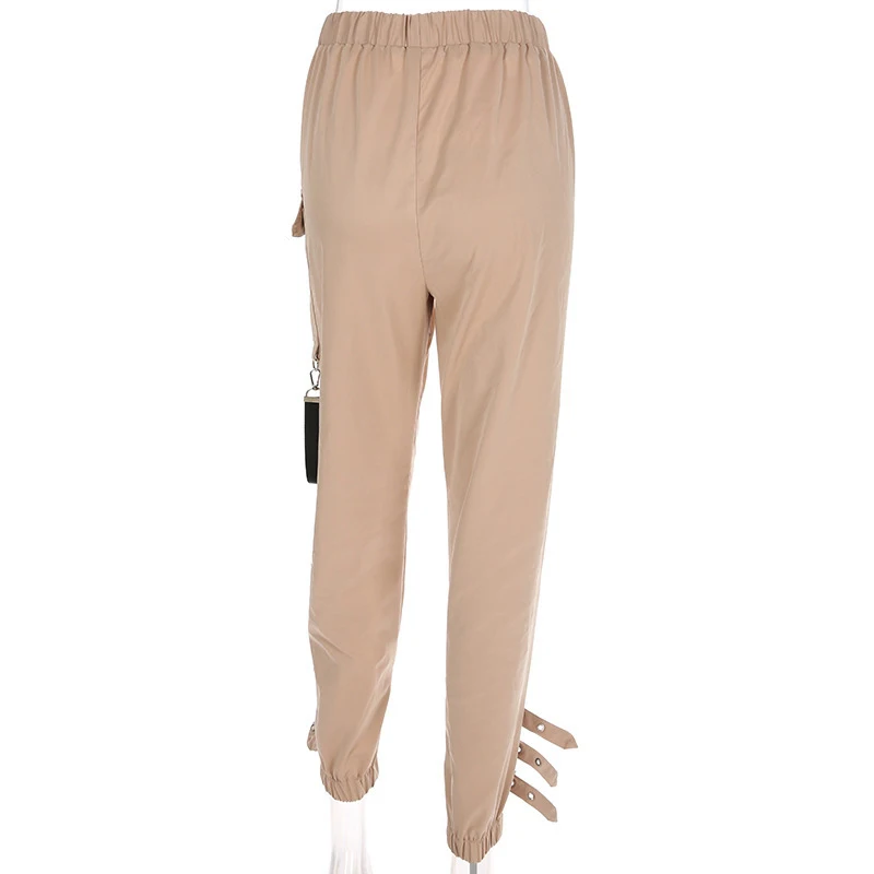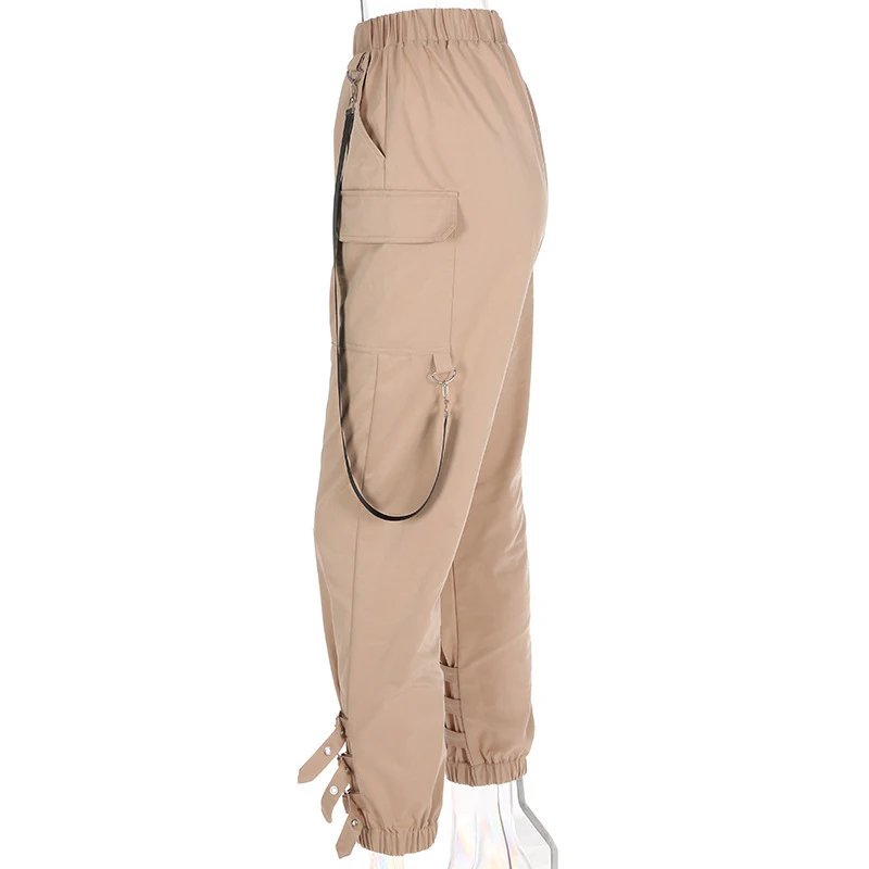 Новые Женские однотонные хип-хоп брюки-карго Пряжка для брюк повседневные женские брюки с высокой талией свободные длинные штаны для тренировок Pantalon Femme спортивные штаны