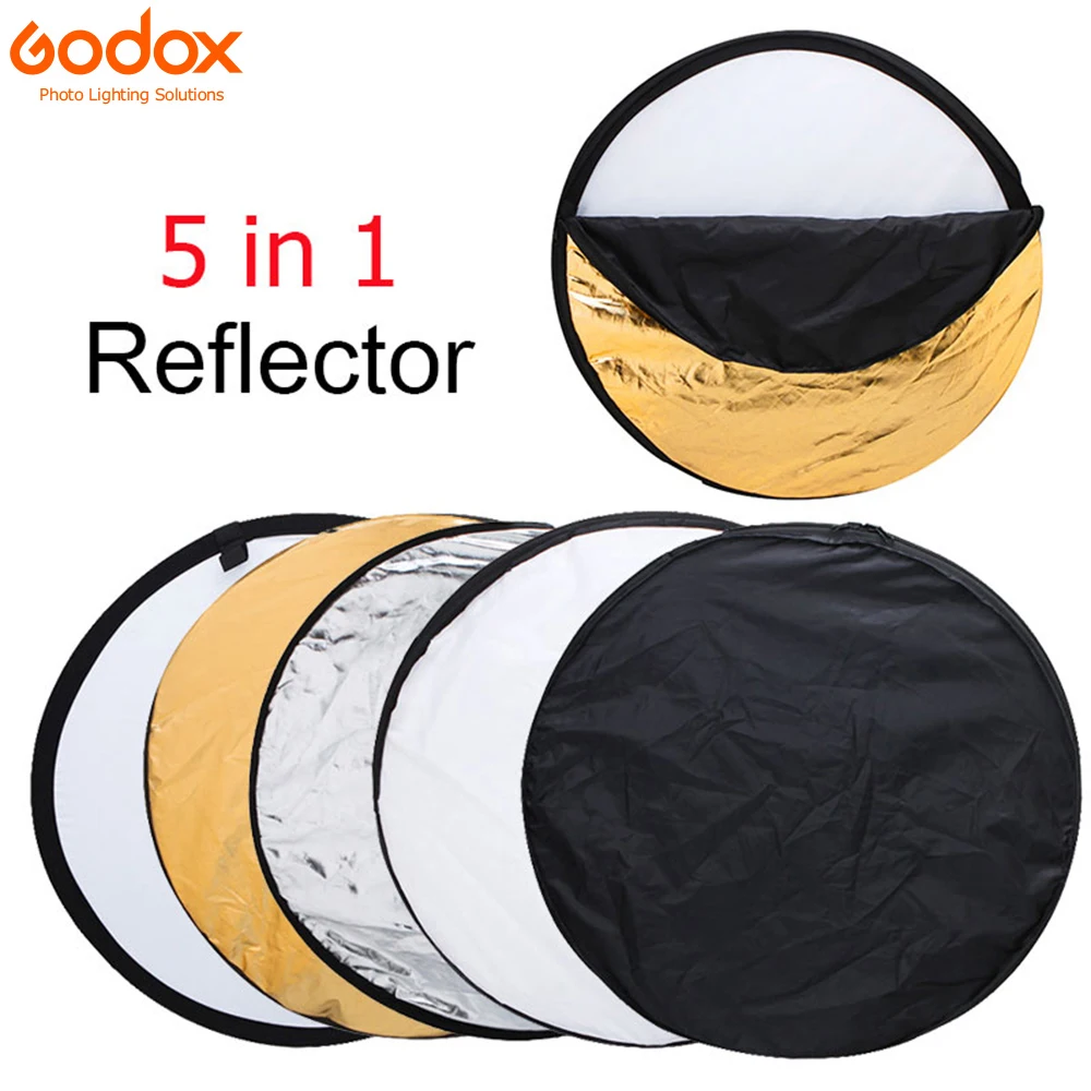 Портативный складной светильник Godox 24 "60 см 5 в 1, круглый белый отражатель для студийной фотосъемки