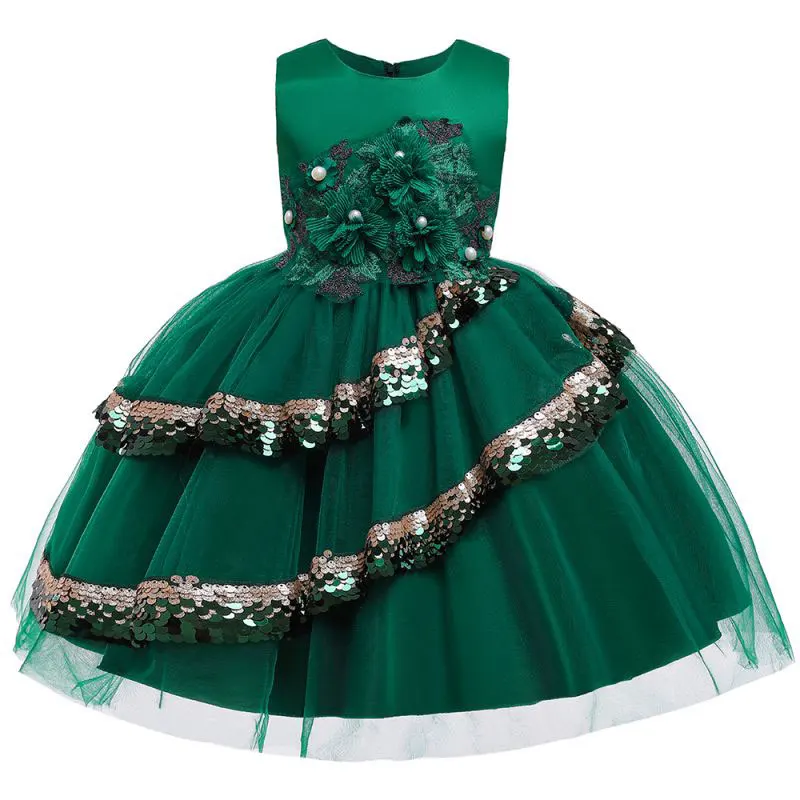 2. Красивое платье принцессы без рукавов с цветочным узором и блестками, которое сделает вашего ребенка милым и привлекательным