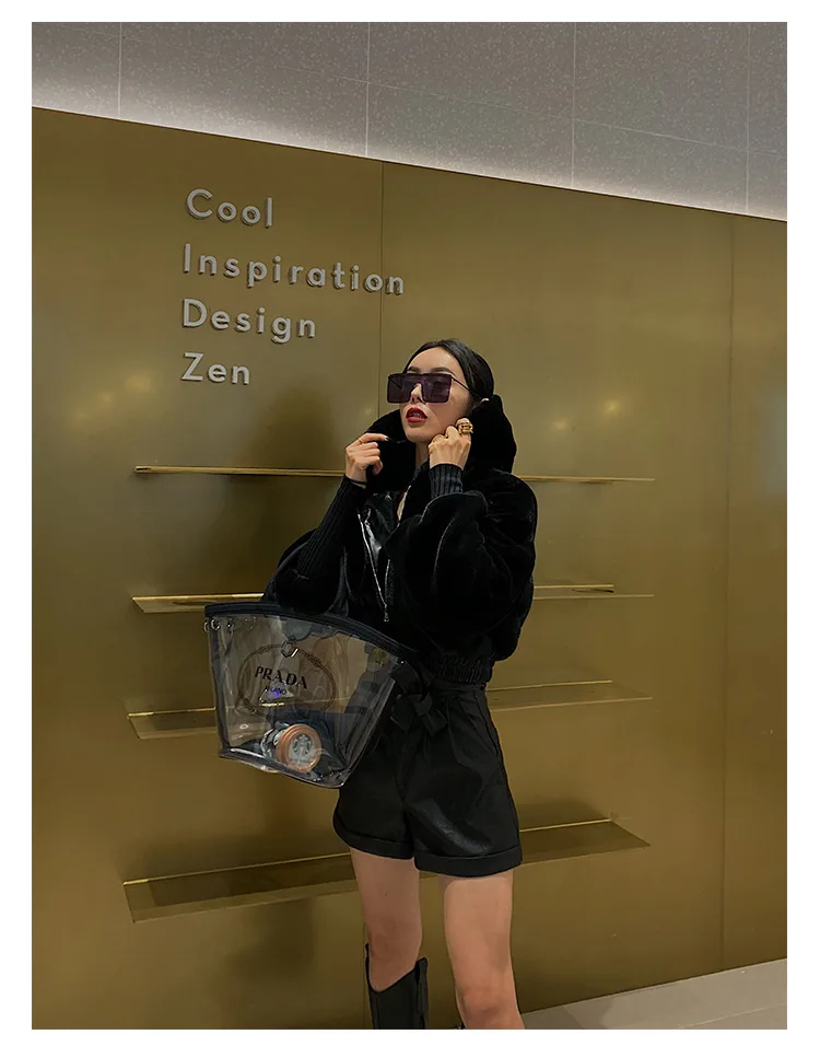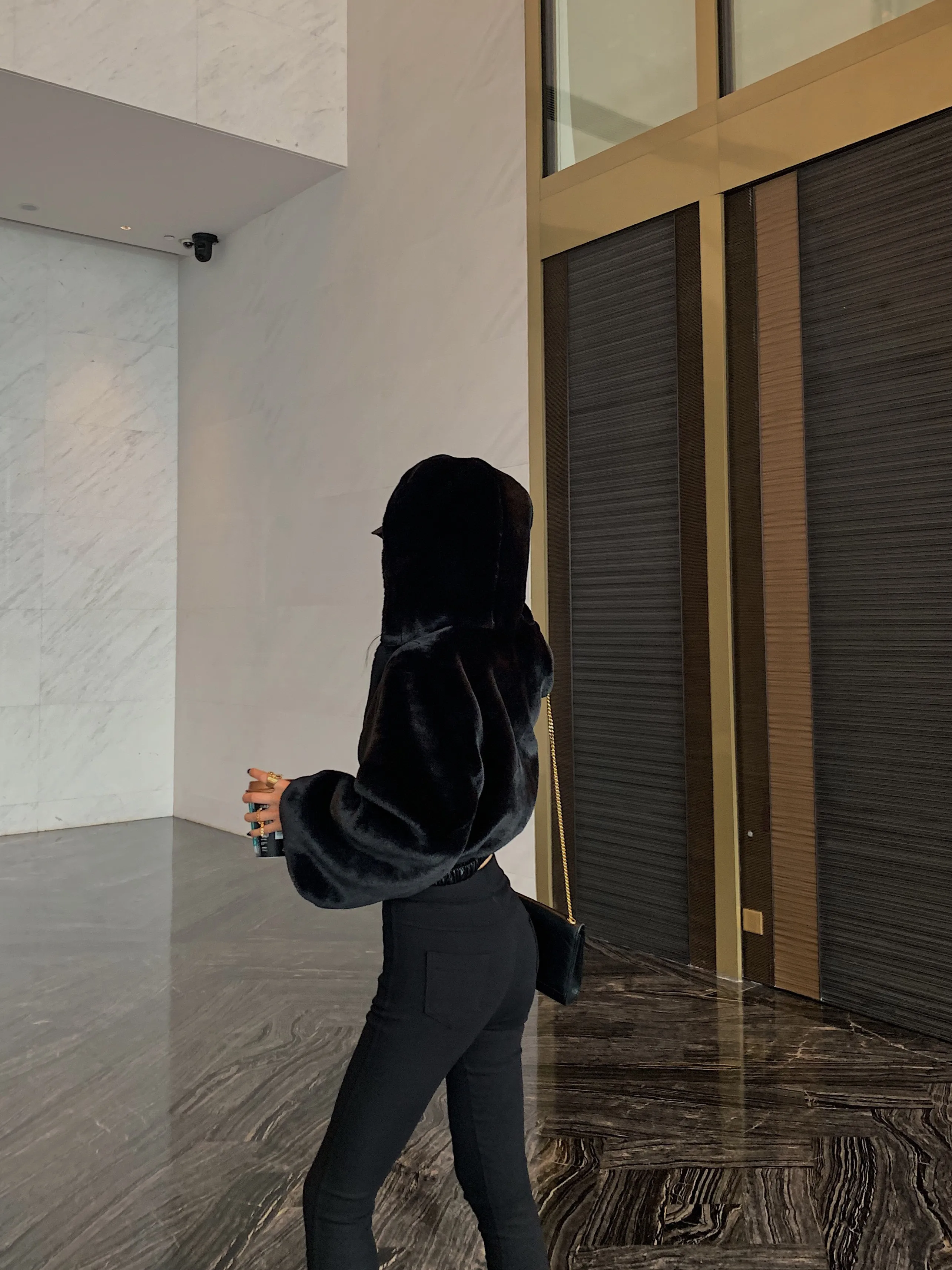 Женская зимняя куртка из искусственного кроличьего меха с капюшоном - купить по