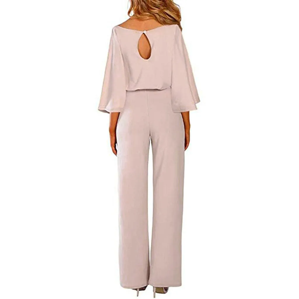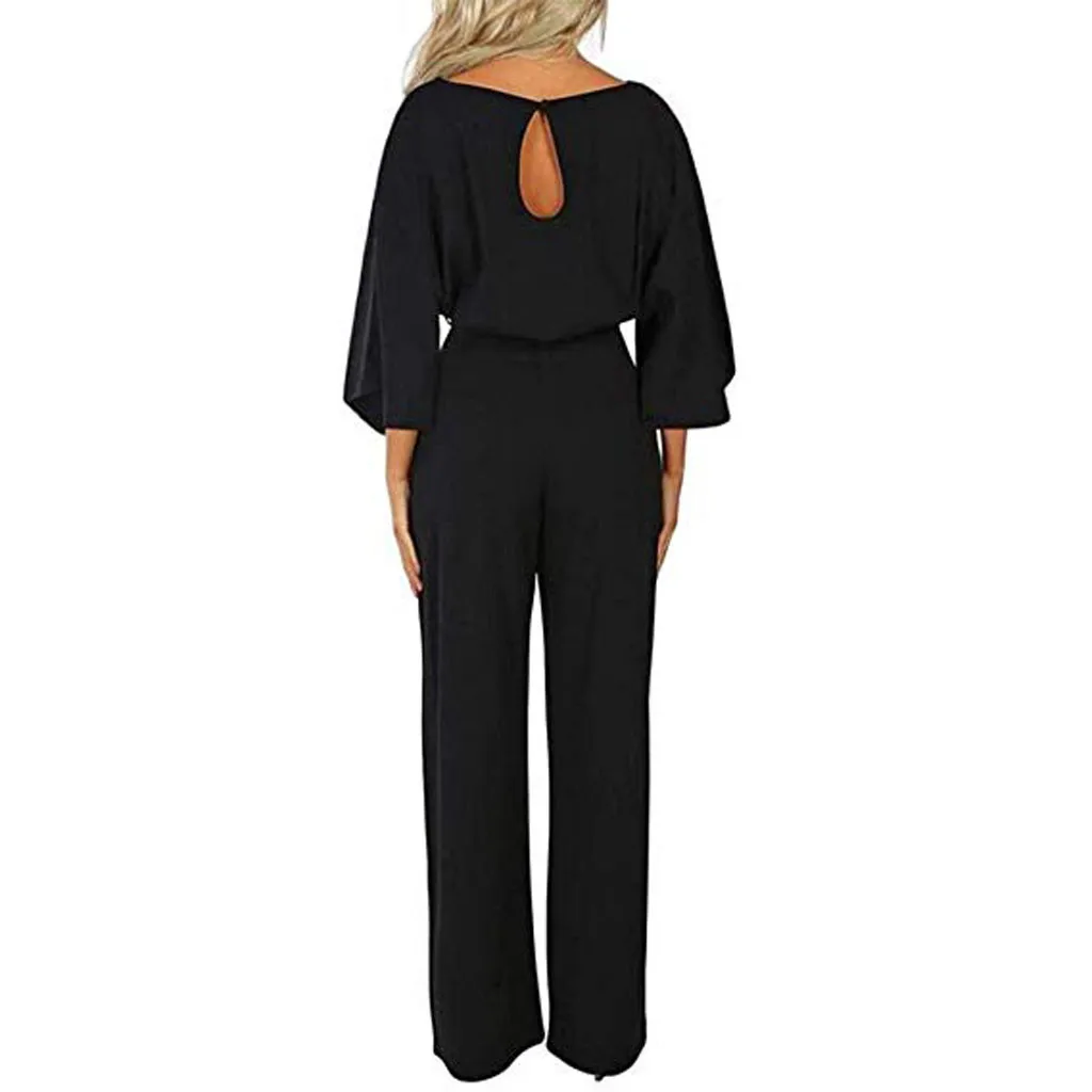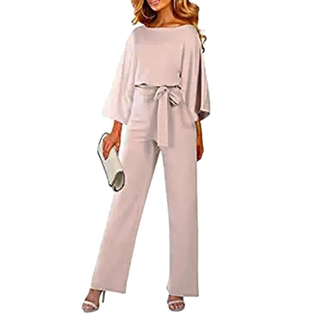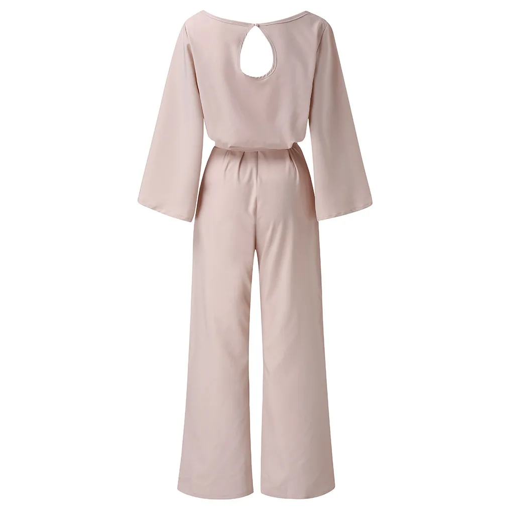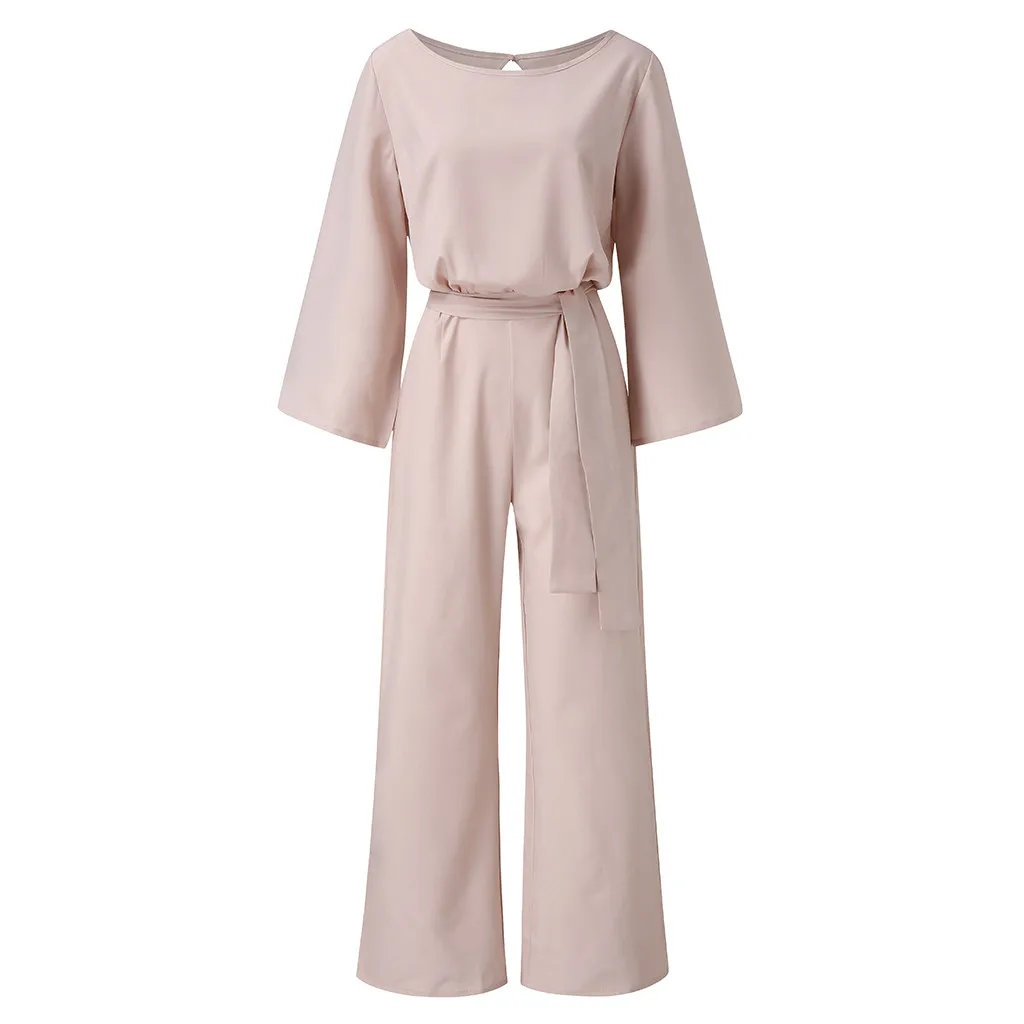 Повседневные женские комбинезоны с ремнем, модные однотонные Клубные комбинезоны с круглым вырезом и длинными рукавами, весенние прямые комбинезоны monos de fiesta 2020, новинка, хит продаж