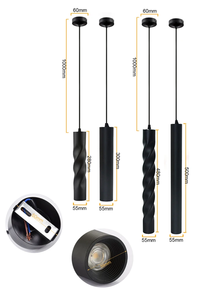 Цилиндр: 55*300 мм/55*500 мм Резьба: 55*280 мм/55*480 мм Посылка включает в себя: 1 шт. подвесной светильник. Описание товара Материал: алюминий + ПК Мощность: 7 Вт, варианты регулировки яркости Светильник Цвет: теплый белый :( 2700K-3200K); Натуральный белый :( 4000K-4200K); Холодный белый :( 6000K-6500K) Напряжение: AC90V-260V