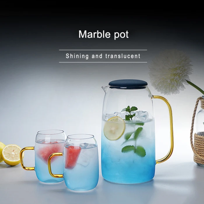 Градиентная Цветная мраморная стеклянная бутылка для холодной воды, термостойкий стеклянный горшок, чайник для кувшин feat889