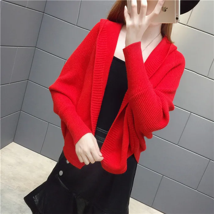 2020 spring Shawl knitting Jacket Female Fashion Bat sleeve Short Cardigan Sweater New Cape-style Winter Women clothing Q205