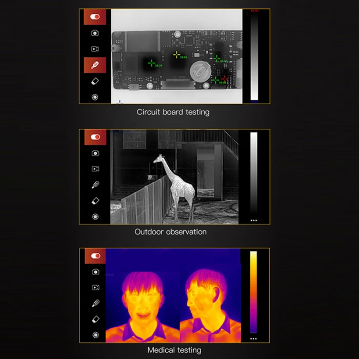 4. Высокоскоростное и точное измерение температуры: измерение температуры в полной раме, мгновенное обновление, динамическое отслеживание ошибок при высокой температуре, мгновенное определение местоположения; Функция измерения температуры: измерение температуры с отражением влажности, излучение температуры, температура окружающей среды