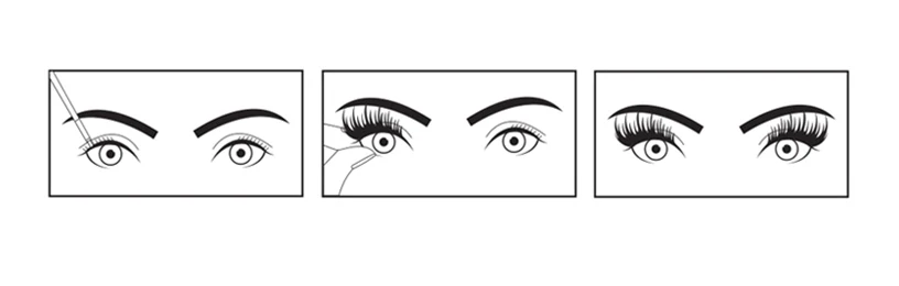 4-Возьмите кончик магнитных волос для ресниц пинцетом или пальцами и поместите его выше реальных ресниц, затем медленно закройте магниты и соедините с линией подводки для глаз, до полного высыхания.