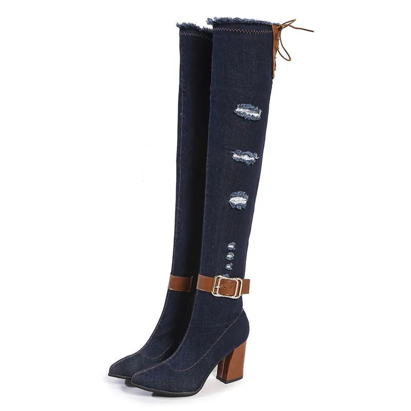 Женские Удобные Сапоги выше колена на платформе молнии с массивным каблуком |