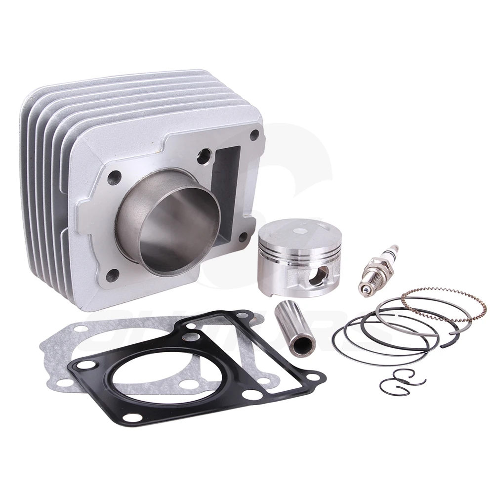 1 поршень стандартного размера. 1X блок цилиндров. 1 комплект поршневых колец. 1X поршневого пальца. 2X зажима. 1X прокладка головки цилиндра. 1X цилиндр блочная прокладка. 1X свеча зажигания. Другие аппаратные средства, как показано на фотографиях -Примечание: инструкция по установке отсутствует
