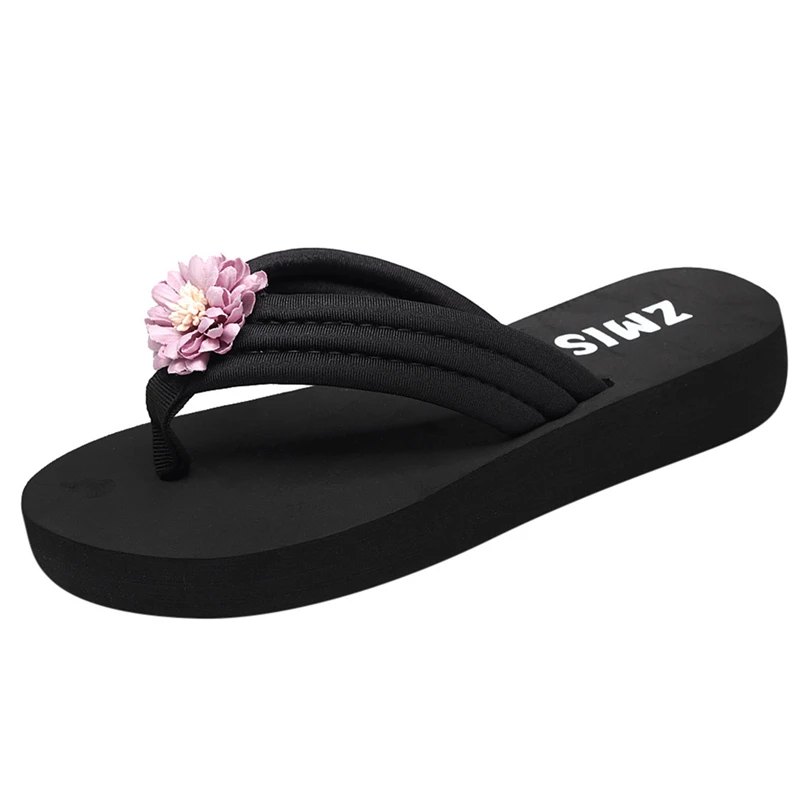 Шлепанцы женские летние с искусственным цветком, Нескользящие, на резиновой танкетке