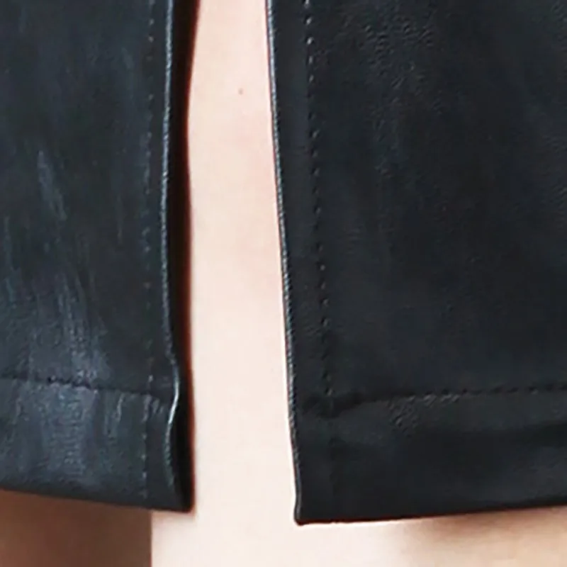2. Дизайн: спилок искусственная кожа с высокой талией, однотонная сумка на бедрах с неровным подолом, Длинный Облегающий дизайн, полная длина.