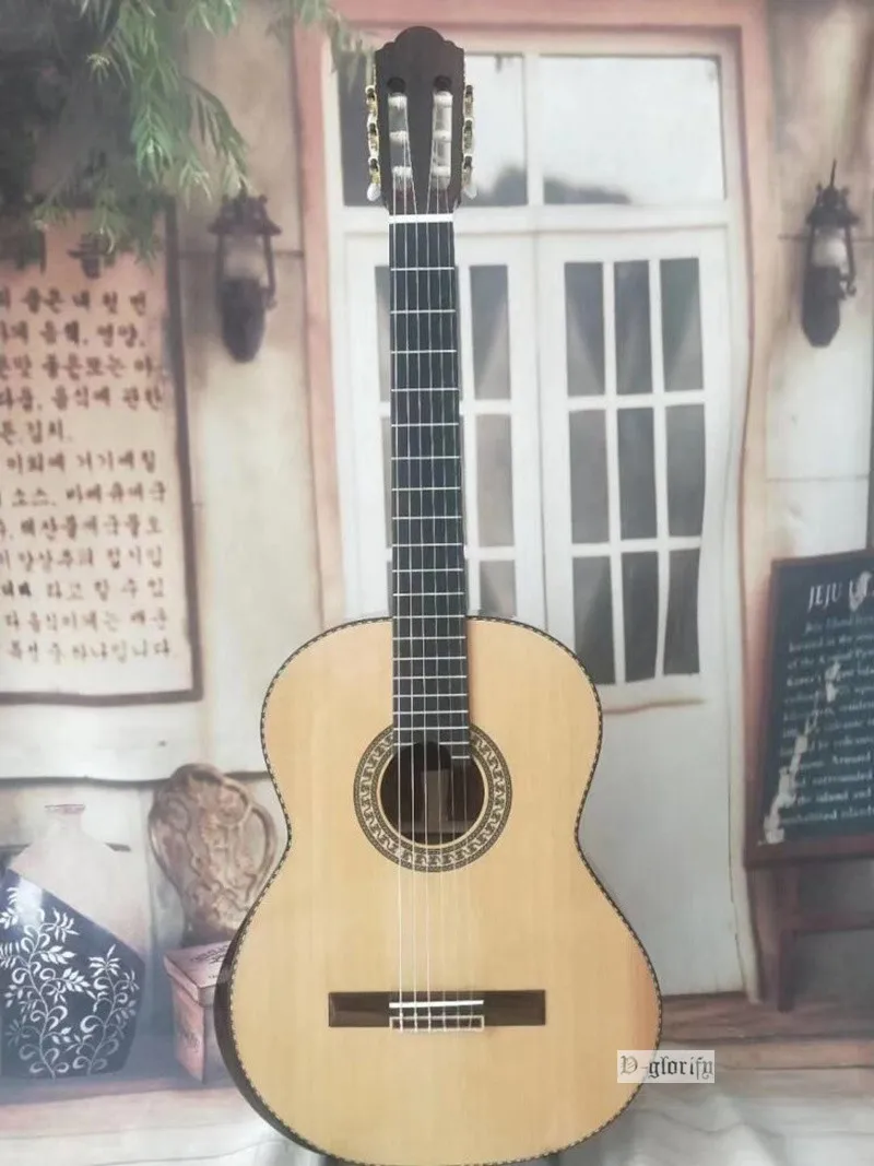 Полностью из твердых сортов древесины, Классическая гитара 39 дюймов, полноразмерная 6 струнная, блестящая Классическая гитара, натуральный цвет с бесплатным твердым чехлом