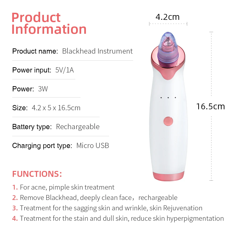 Инструмент для очищения лица-это личный инструмент, который дает вам преимущества микродермабразии на кончиках ваших пальцев за небольшую часть стоимости. С помощью миллионов природных минеральных причастий вакуумное давление v-типа для лифтинга лица для очистки и удаления омертвевших клеток кожи на верхнем слое и всасывания для удаления частиц вместе с грязью и черными головками. Технические характеристики: -Материал: АБС-пластик -Емкость аккумулятора: 500 мАч -Тип зарядки: USB зарядка/аккумулятор -Мощность: 5 Вт Основные Особенности: · 3/5 сменные головки для красоты с различными функциями · Функции соскабливания и обрезания для расслабления кожи · USB зарядка/батарея, безопасная и удобная в использовании · Помогает удалить поры, угри, морщины на лице и сохранить вашу кожу чистой, гладкой · Материал ABS экологичен, безопасен, нетоксичен и безвреден для вашей кожи · Эргономичный дизайн, удобно держать Инструкции по использованию: √ Шаг 1: Используйте горячее полотенце на лице или парите лицо на лице в течение нескольких минут 5-10 минут, чтобы открыть поры, так что это удобно адсорбировать черные головки. Шаг 2: выберите подходящую всасывающую головку и уровень. Перед использованием проверьте всасывание предплечья. Шаг 3: выберите различные наконечники и шестеренки по мере необходимости, и переместите наконечник на кожу и быстро двигайтесь. Не оставайтесь в течение более 2 секунд. √Шаг 4: нанесите маску или сыворотку на нос в течение 10 минут, Усадите поры и полностью поглотите. Примечание: 1. Пожалуйста, не используйте его в течение 5 минут, чтобы предотвратить повреждение кожи; 2. Пожалуйста, не Оставайтесь на одном месте слишком долго, чтобы предотвратить от фиолетовой и красной кожи; 3. Пожалуйста, не используйте его, если ваша кожа сломана и повреждена; 4. Сухая кожа может использовать ее один раз в неделю, жирная и Смешанная кожа может использовать ее два раза в неделю; 5. Это нормально, что ваша кожа будет немного Красной после использования, красный исчезнет через 5 ~ 10 минут