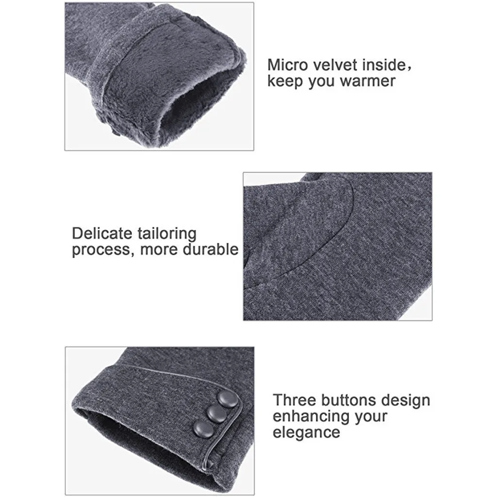 Один размер подходит для большинства: Эти перчатки мягкие и удобные, чтобы носить с меньшей эластичностью, легко носить и снимать, правильный размер, который подходит для взрослых, используя в холодные дни Классический дизайн: полный охват ваших пальцев, Дайте вашим руками полную защиту от холода в зимние дни, 3 кнопки обозначение, которое является элегантным и простым, может соответствовать вашим различным стилям Материал: снаружи сделан из полиэстера и хлопка, внутренний материал-микро-бархат, ветронепроницаемый и хорошо сохраняет тепло, также подарит вам комфорт при ношении Применение: теплые ветрозащитные плюшевые перчатки подходят для применения в повседневной жизни и на открытом воздухе, таких как альпинизм, катание на лыжах, горный велосипед, бег и так далееПосылка Содержание: