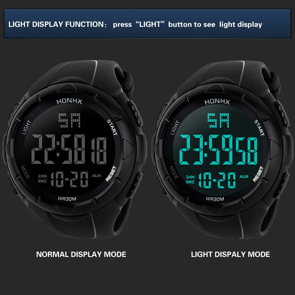 Механизм: Цифровой Стиль: Спорт Материал поверхности: акрил Материал циферблата: акрил Дисплей: Цифровой Материал ремешка: силикон Особенности: Состояние на 100% абсолютно новый Материал корпуса: высококачественный Поликарбонат. Материал ремешка: силикон/резина. Механизм: точный кварцевый механизм JP. Водонепроницаемость: 5 АТМ, также для душа, плавания и погружения на глубину до 50 м. (Не нажимайте кнопки под водой) Спецификация (приблизительно): Диаметр чехла: 5,5 см Толщина чехла: 1,50 см Мин. Обхват запястья: 17,5 см Макс. Обхват запястья: 22,5 см Длина ремешка: 24 см Регулируемый ремешок: Да Содержимое упаковки: 1 спортивные часы