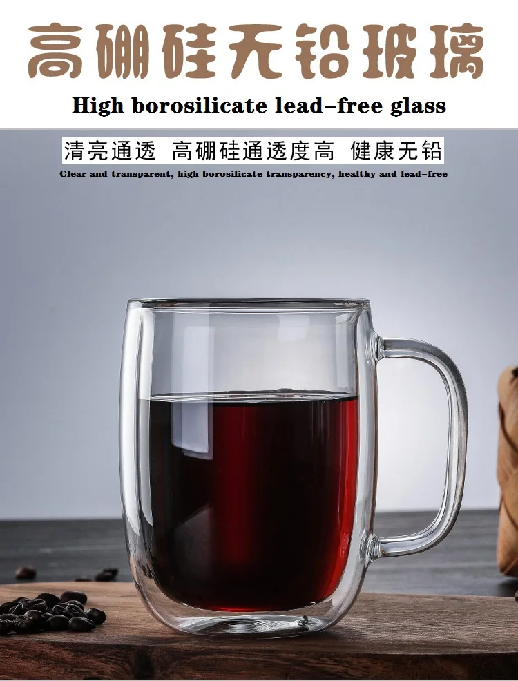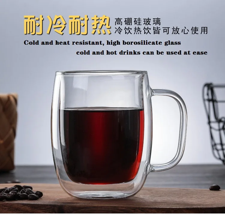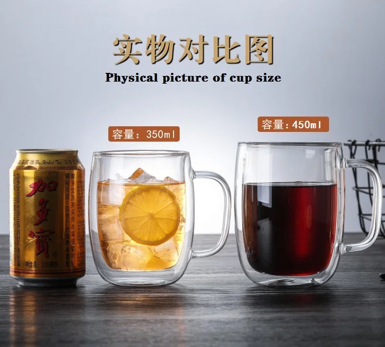 Термостойкая стеклянная чашка с двойными стенками, кофейные кружки с ручками, стеклянные чашки с spoon350 мл из нержавеющей стали 450 мл
