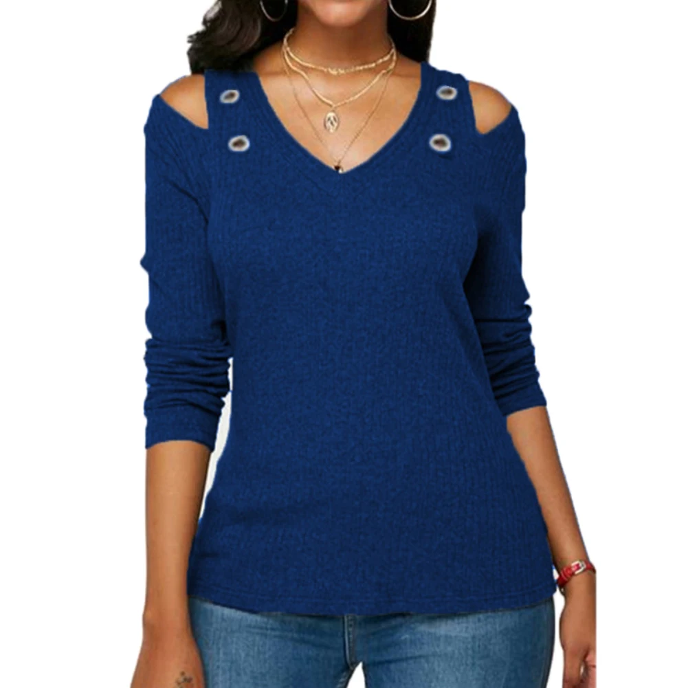 Повседневная Женская рубашка размера плюс, однотонная блузка с круглым вырезом, длинным рукавом и открытыми плечами, модная женская одежда
