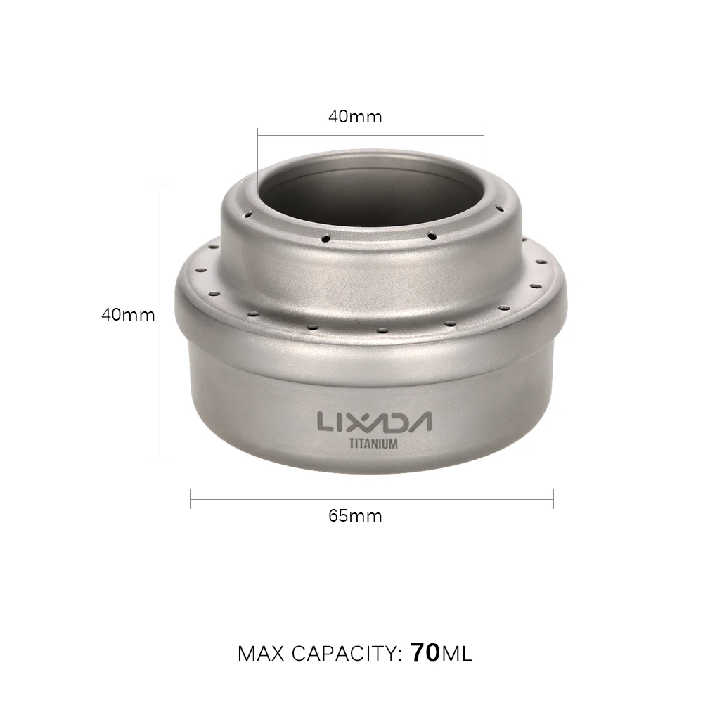 Мини титановая спиртовая печь с четкой градацией для удобства использования. Поставляется с сумкой для хранения для удобной переноски.
