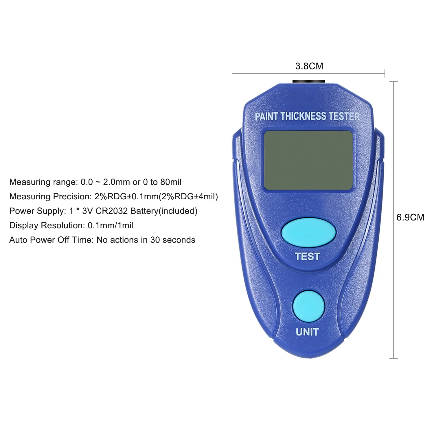 Данный измеритель толщины краски предназначен для неразрушающего измерения толщины немагнитных покрытий (включая краску, эмаль, пластик, эпоксидную смола и т. д.) на железе, стали или алюминии.