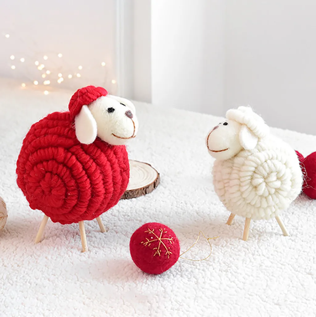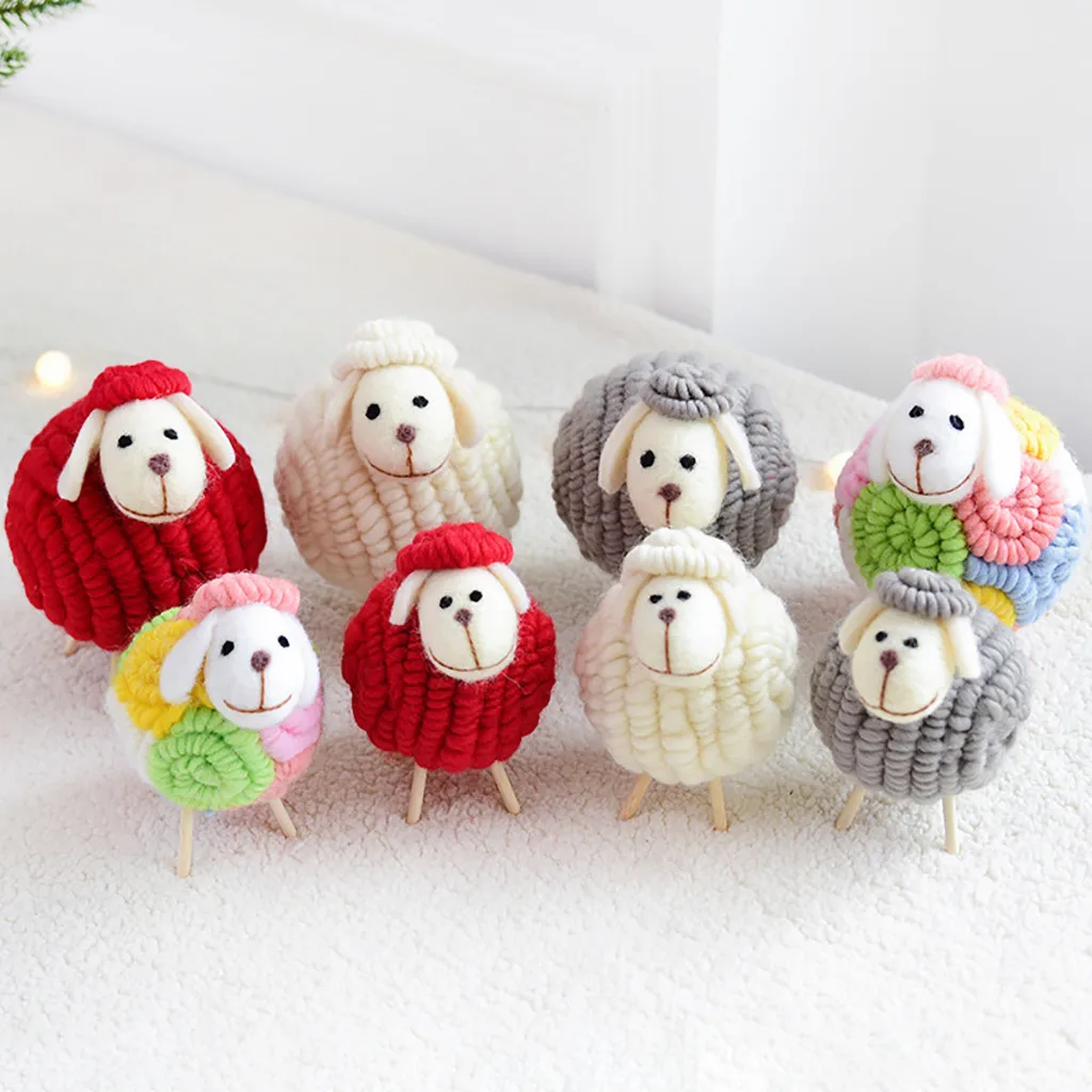 Милый Рождественский Настольный орнамент, мини-украшение из овечки, поделки из ягненка