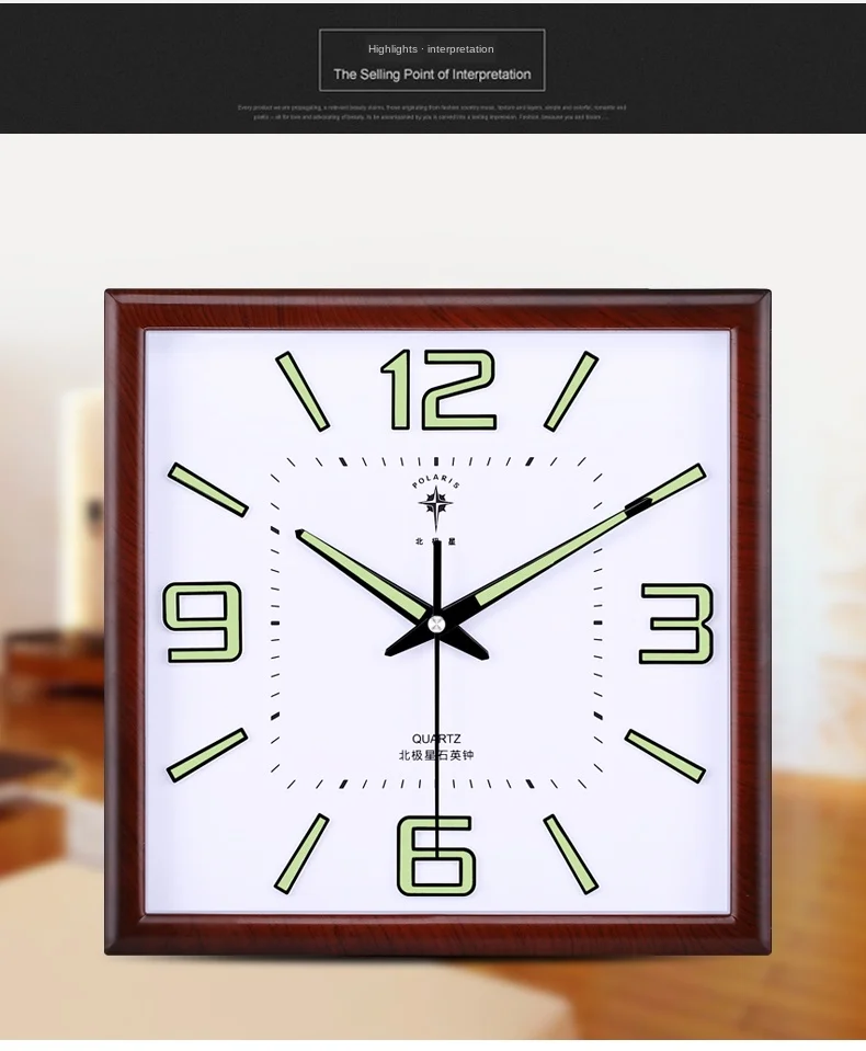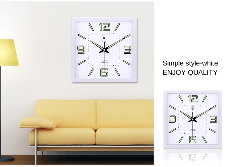 Квадратный ночник, большие настенные часы, винтажные, для гостиной, светящиеся, офисные, кварцевые часы, домашний декор, Reloj Cocina Decoration SC211