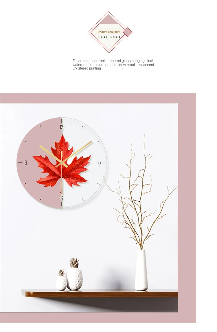 Скандинавская Современная Настенная картина с часами для кухни, дома, кленовый лист, гостиная, Скандинавский дизайн, часы, механизм, скрытый сейф, Reloj Home SC106