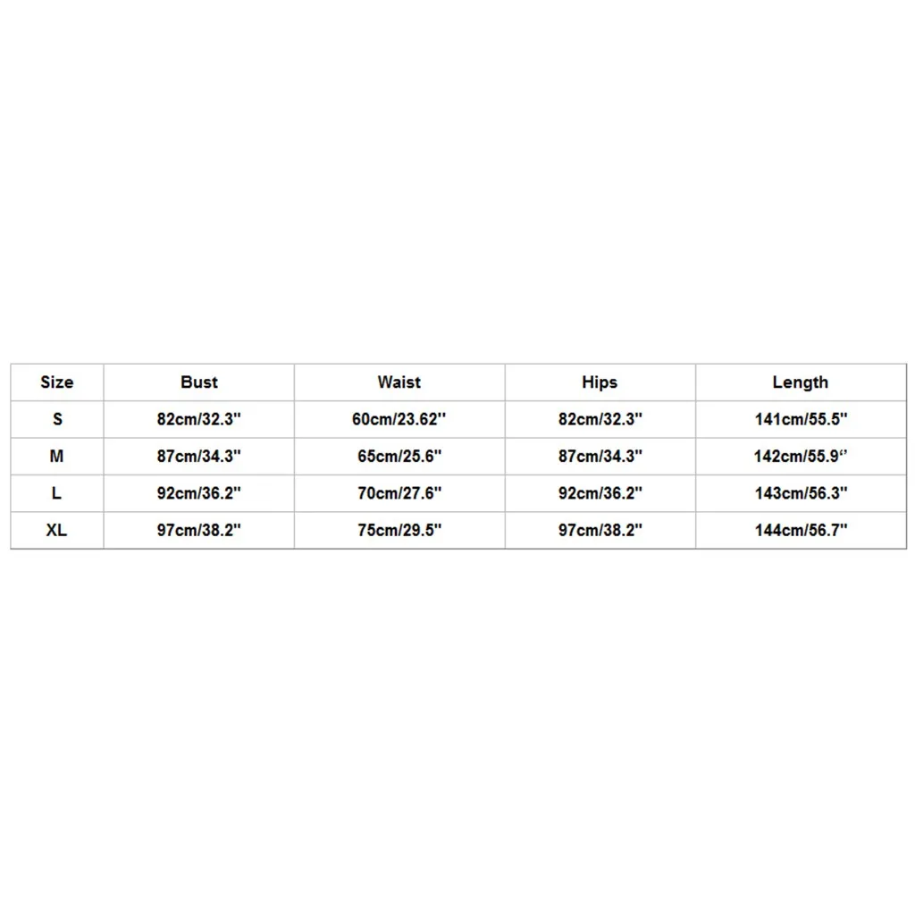 Размеры Бюст Талия Бедра Длина S 82 см/32,3" 60 см/23,62'' 82 см/32,3" 141 см/55,5" М 87 см/34,3" 65 см/25,6" 87 см/34,3" 142 см/55,9'' L 92 см/36,2" 70 см/27,6" 92 см/36,2" 143 см/56,3" XL 97 см/38,2" 75 см/29,5" 97 см/38,2" 144 см/56,7"