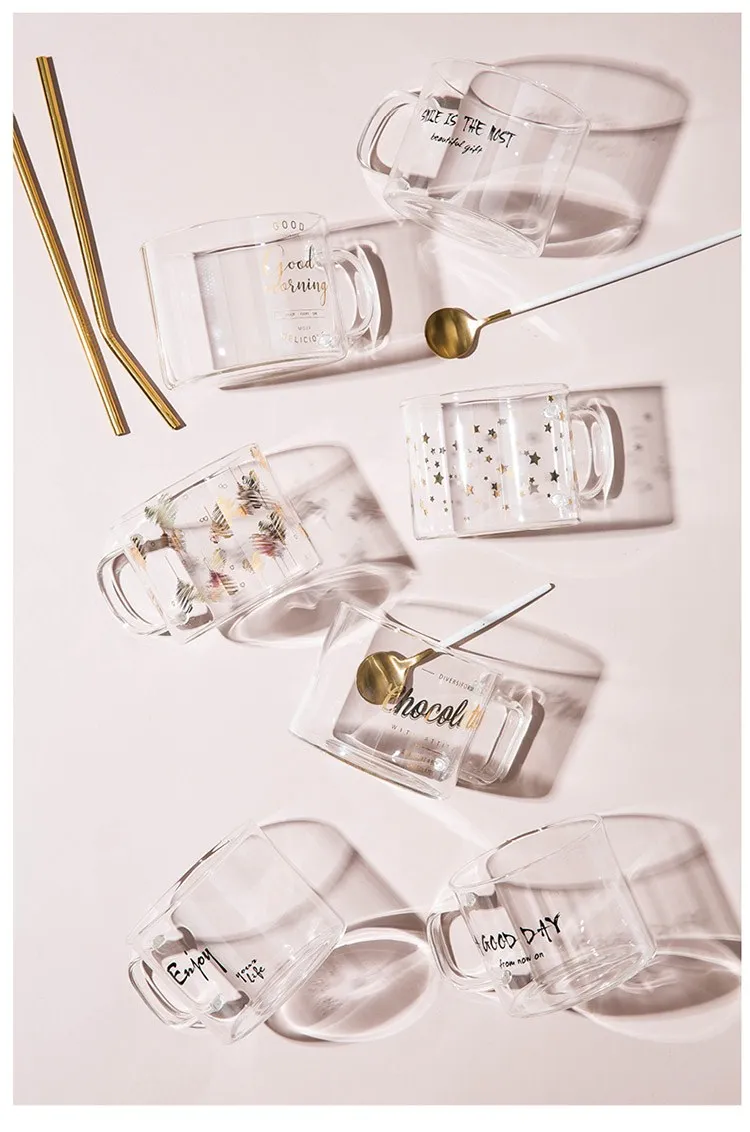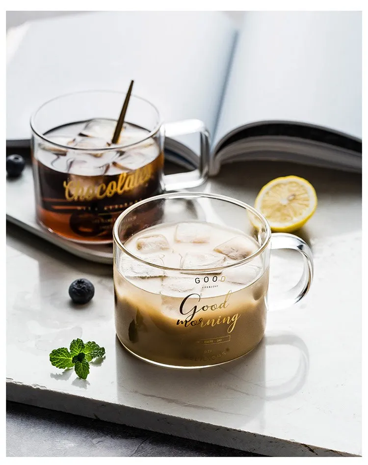 2 шт стеклянные чашки и кружки, прозрачная кофейная кружка, креативные чайные чашки, пивные стеклянные термостойкие взрывобезопасные стаканы