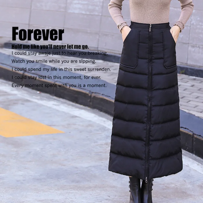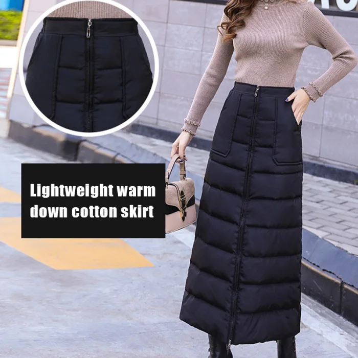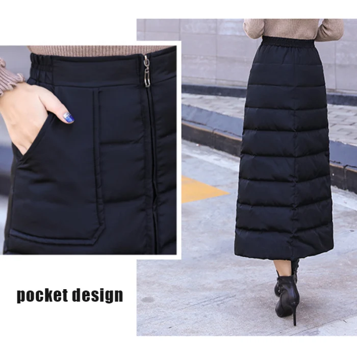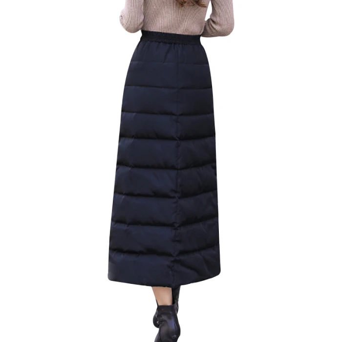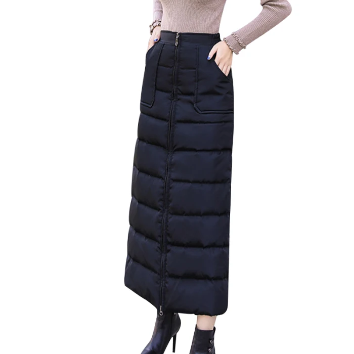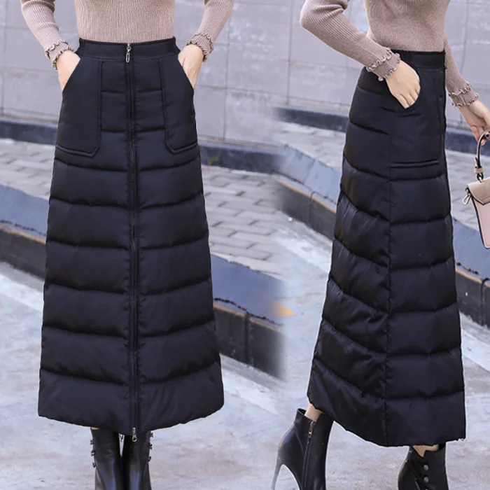 Популярная зимняя пуховая хлопковая юбка с высокой талией на молнии, длинная теплая юбка, утолщенная Женская трапециевидная юбка IE998