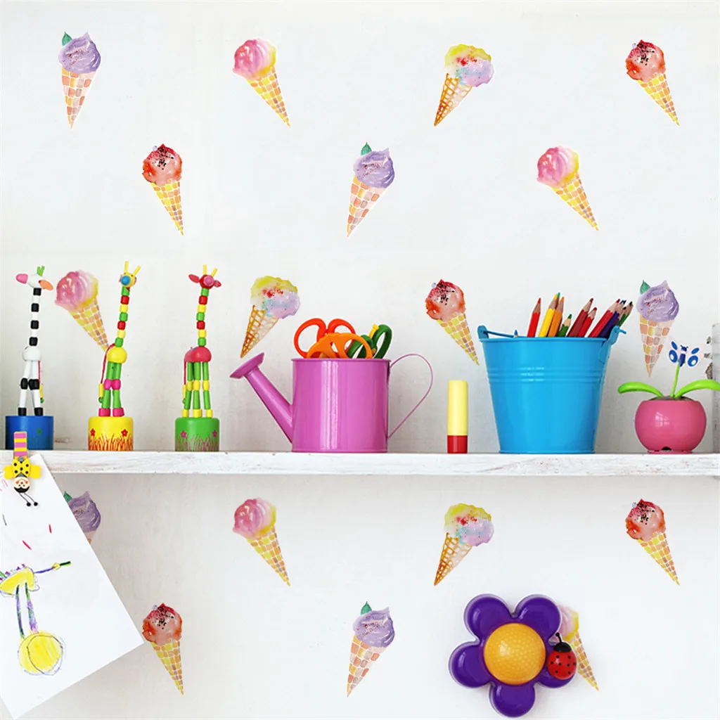 Наклейки на стену с изображением мороженого из мультфильма, креативные наклейки на стену для детской комнаты, декоративные настенные наклейки на окно для дома