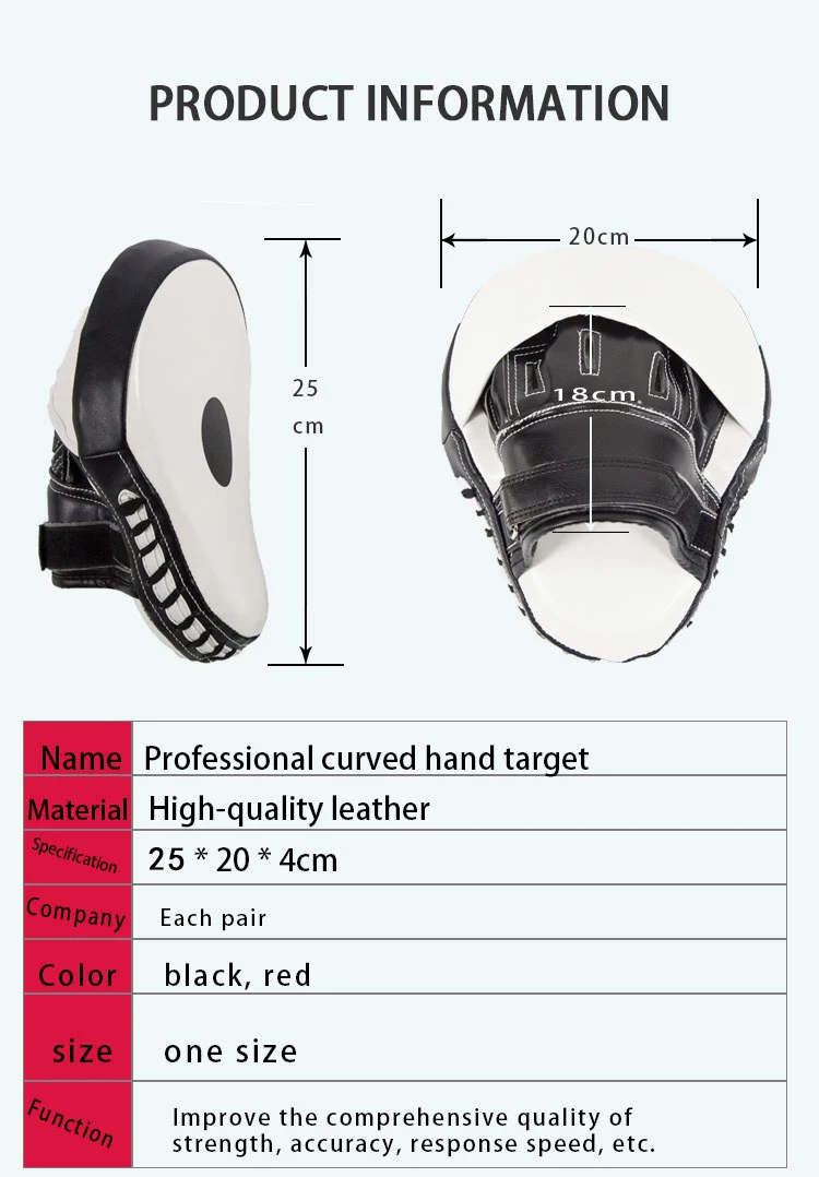 Название: профессиональная изогнутая ручная мишень Спецификация: 25*20*4 Цвет: черный, красный Размер: один размер Материал: Высококачественная кожа Функция: Улучшите комплексное качество прочности, точности, скорости отклика и т. д.