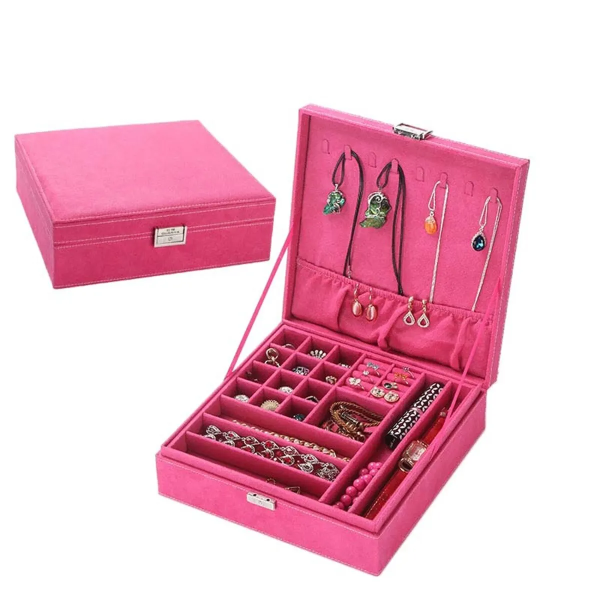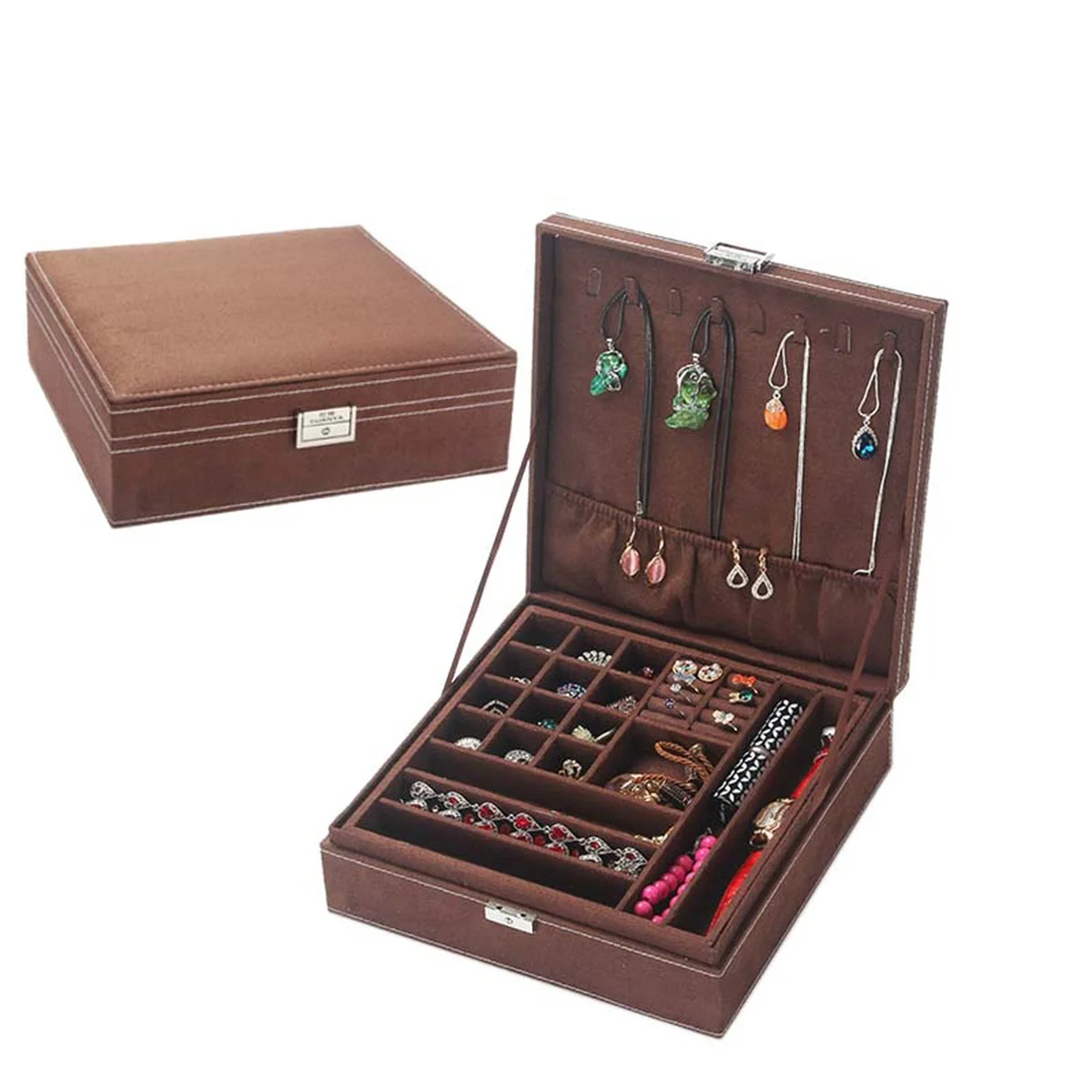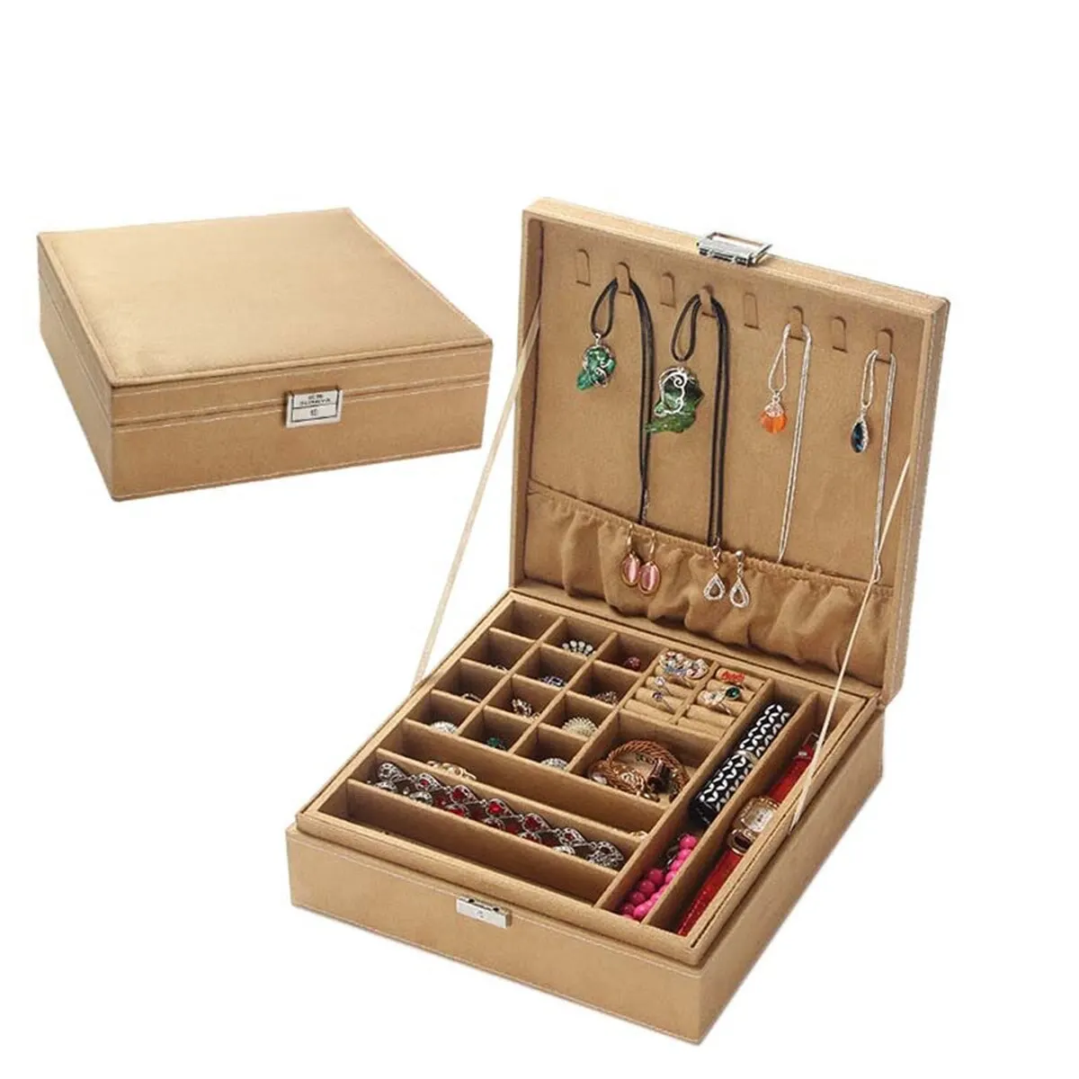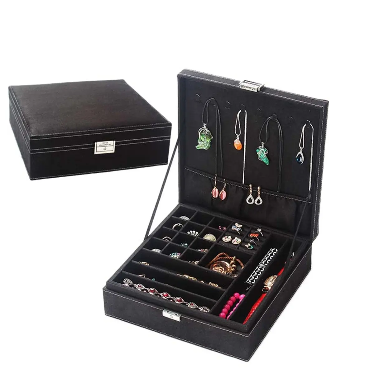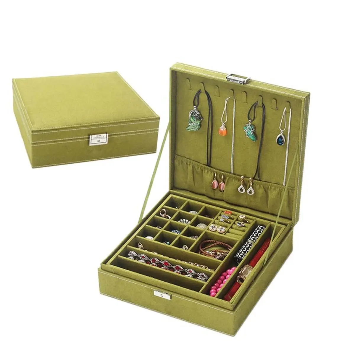 Loozykit 1 шт. большая модная фланелевая квадратная шкатулка, простая раскладка, 2 слоя, органайзер для макияжа, чокер, кольцо, ожерелье, коробка для хранения
