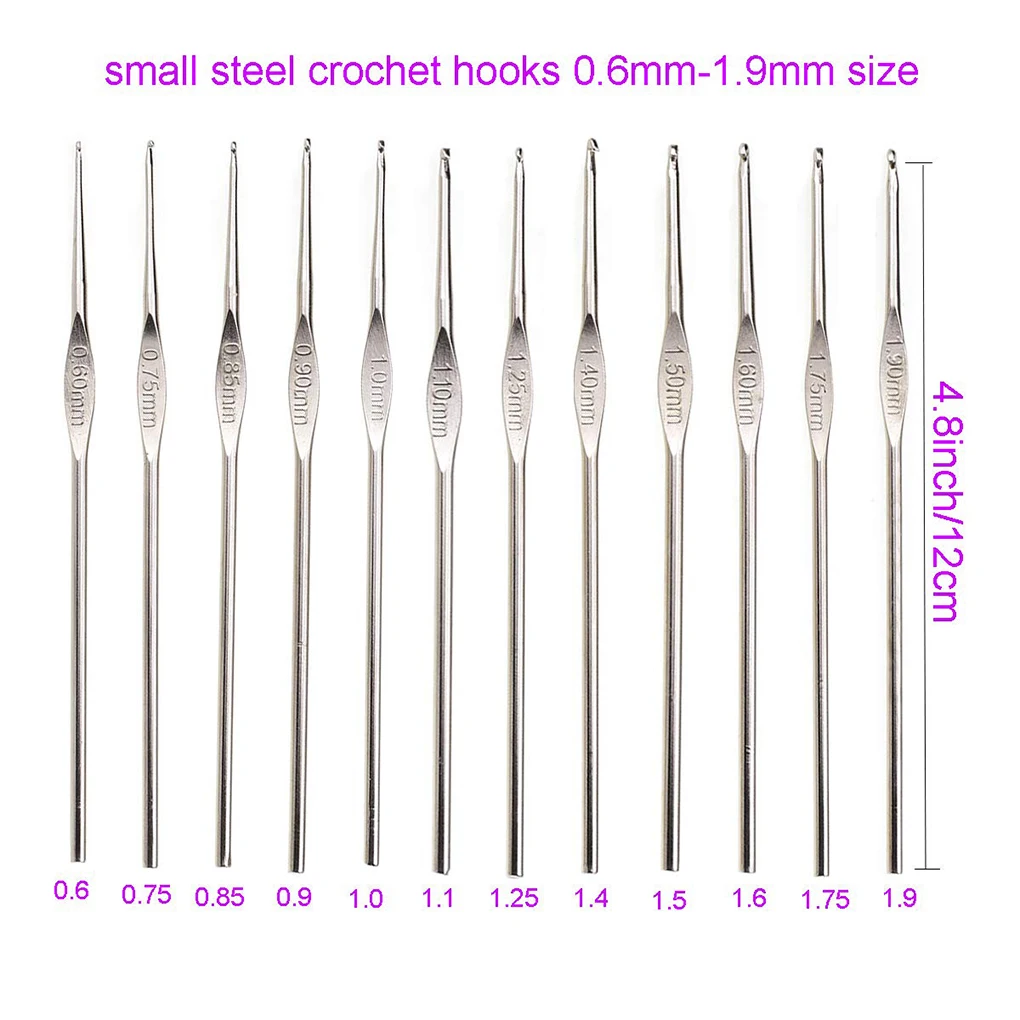 Вязальный крючок Размеры: 0,6 мм/0,75 мм/0,85 мм/0,9 мм/1,0 мм/1,1 мм/1,25 мм/1,3 мм (1,4 мм) /1,5 мм/1,6 мм/1,75 мм/1,9 мм/2,0 мм/2,5 мм/3,0 мм/3,5 мм/4,0 мм/4,5 мм/5,0 мм/5,5 мм/6,0 мм/ 6,5 мм.