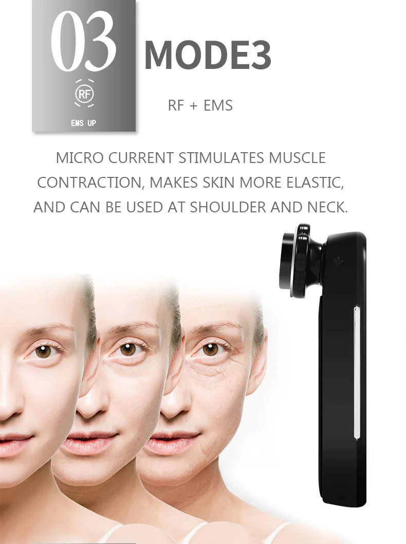 4. RF + красный светильник. В то же время, нагревая глубокий слой кожи, он может обеспечить светильник для ухода за кожей и регенерировать коллаген в нижней части мышц.
