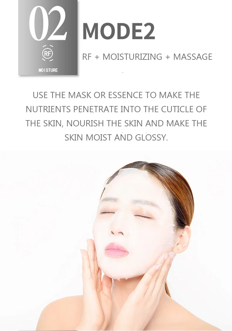 2. RF + увлажнение + массаж. Используйте маску или квинтэссенцию, чтобы питательные вещества проникли в кутикулу кожи, питали кожу и сделали ее влажной и глянцевой.