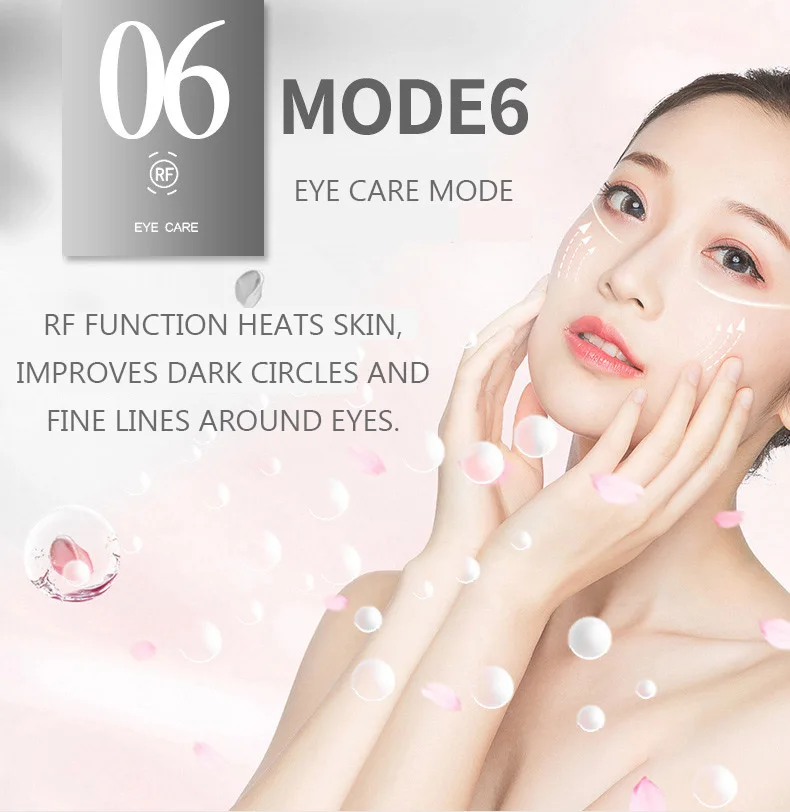 6. Режим ухода за глазами, функция RF нагревает кожу, улучшает темные круги и тонкие линии вокруг глаз.