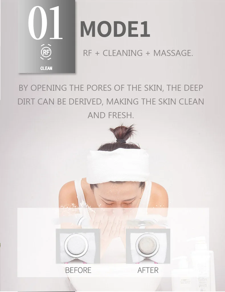 1. RF + Чистка + массаж. Открывая поры кожи, можно получить глубокие загрязнения, делая кожу чистой.