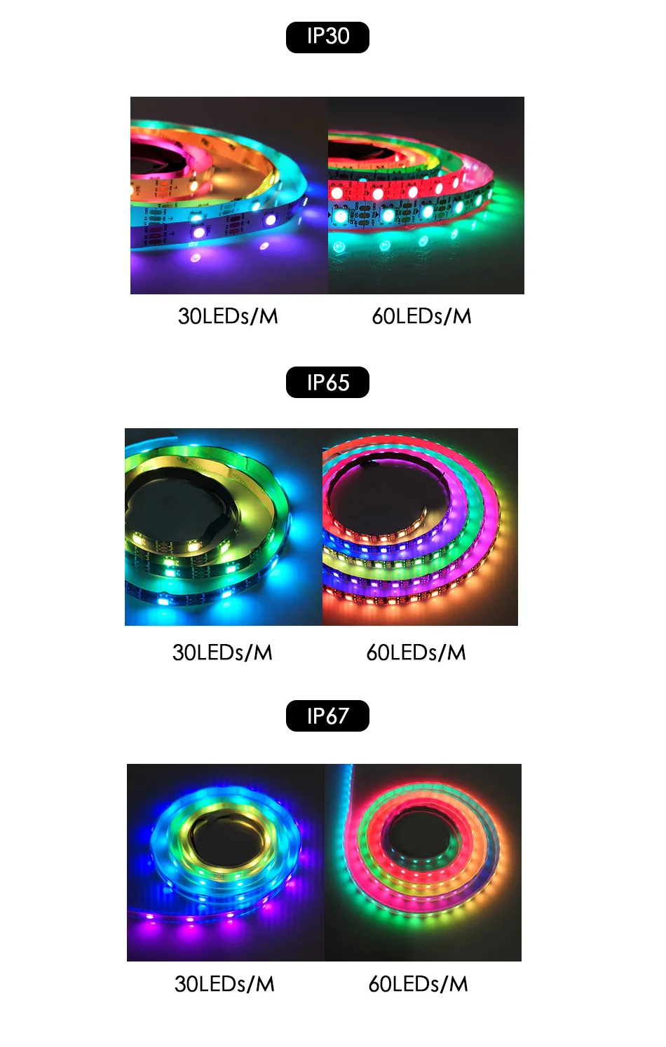 【Мощность】:30 светодиодов/м ---- 9 ватт/М 60 светодиодов/м ---- 18 ватт/М