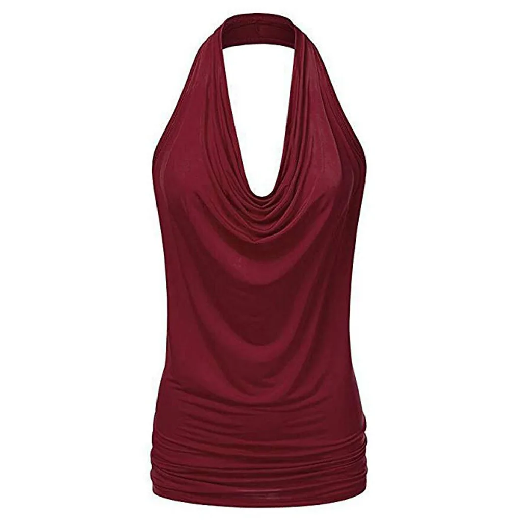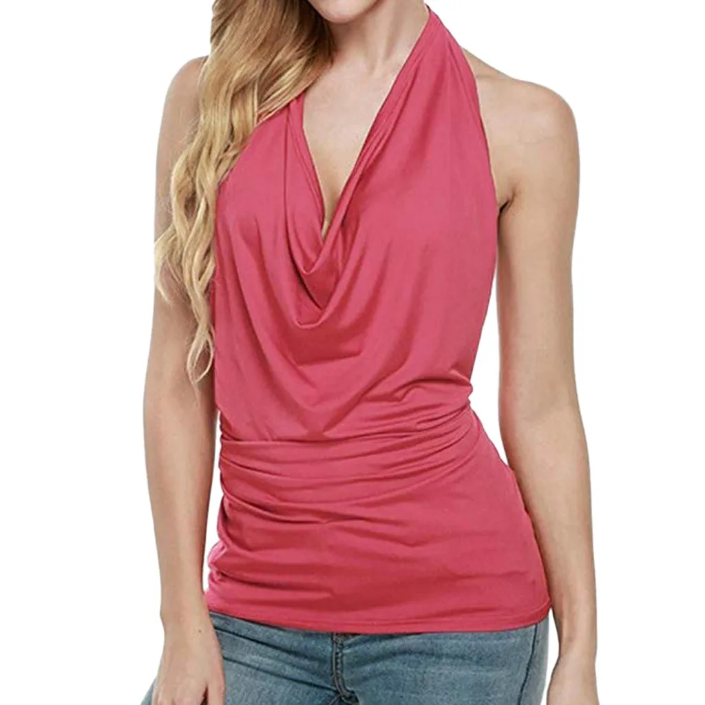 Женская Сексуальная Холтер драпировка хомут шеи майка блузка без рукавов с открытой спиной жилет топы