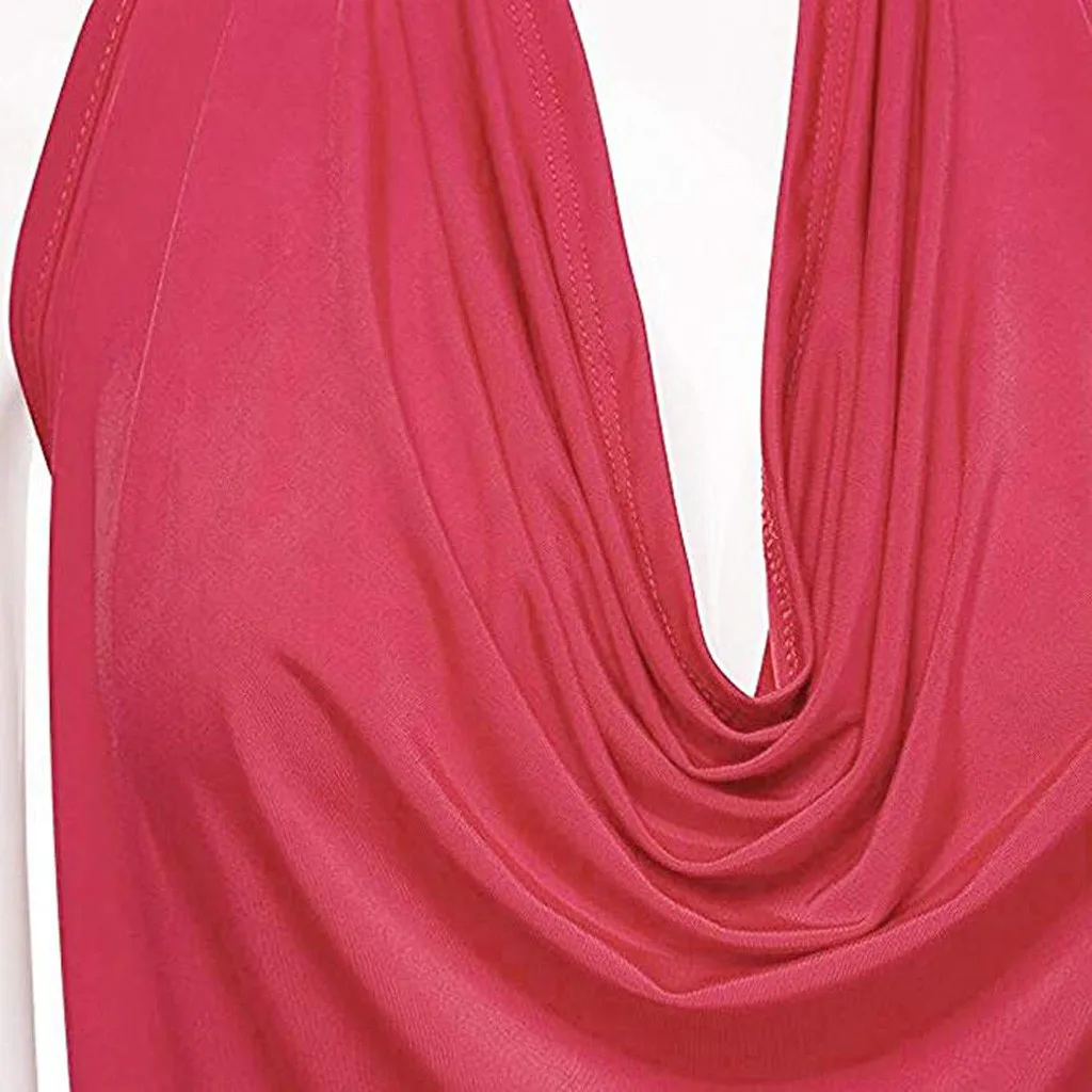 Эта Повседневная Блузка Имеет однотонный дизайн, Холтер и заднюю часть. Легкая и эластичная ткань. Свободный крой Силуэт.