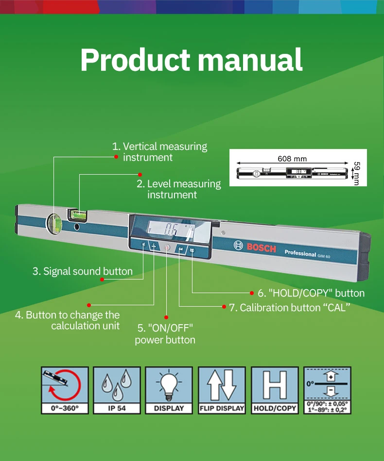 Угловой измерительный прибор Bosch GIM60 Панель измерений Функция очистки Простых в использовании Более удобный в использовании Легкий и компактный