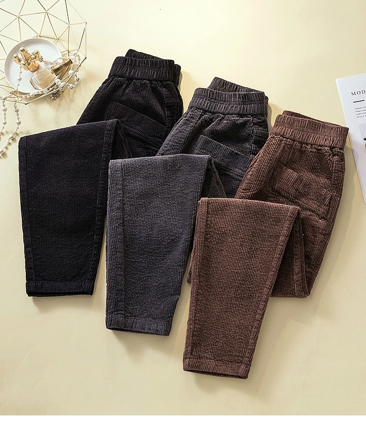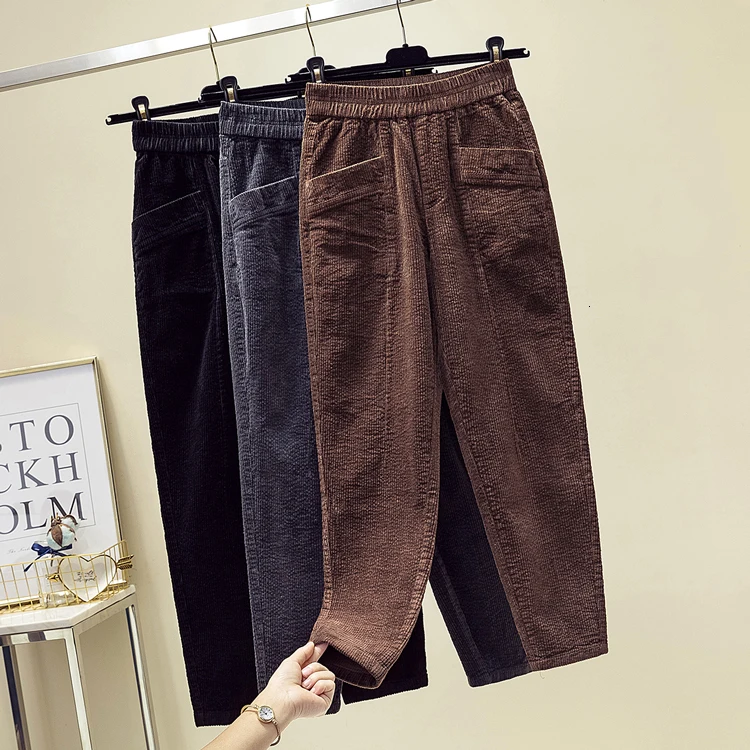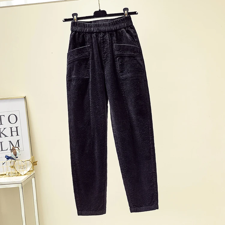 Вельветовые штаны, шаровары на осень и зиму, женские повседневные однотонные брюки с высокой эластичной талией, Pantalon Femme размера плюс 4XL