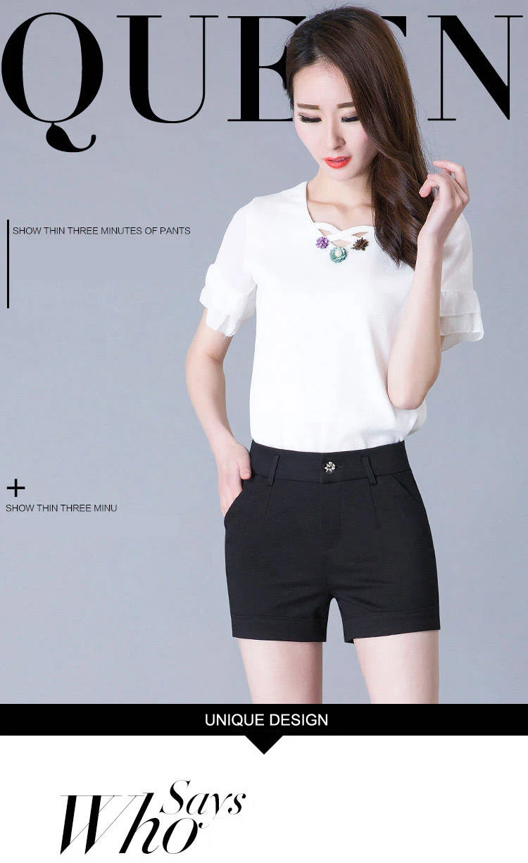 Шорты женские короткие в Корейском стиле офисные Костюмные Белые Простые