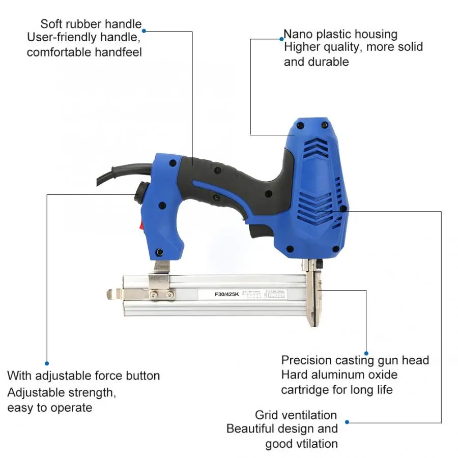Электрический пистолет для ногтей F30/K425, прямые гвозди, деревообрабатывающий штапельный пистолет, штепсельная вилка европейского стандарта, 220 В