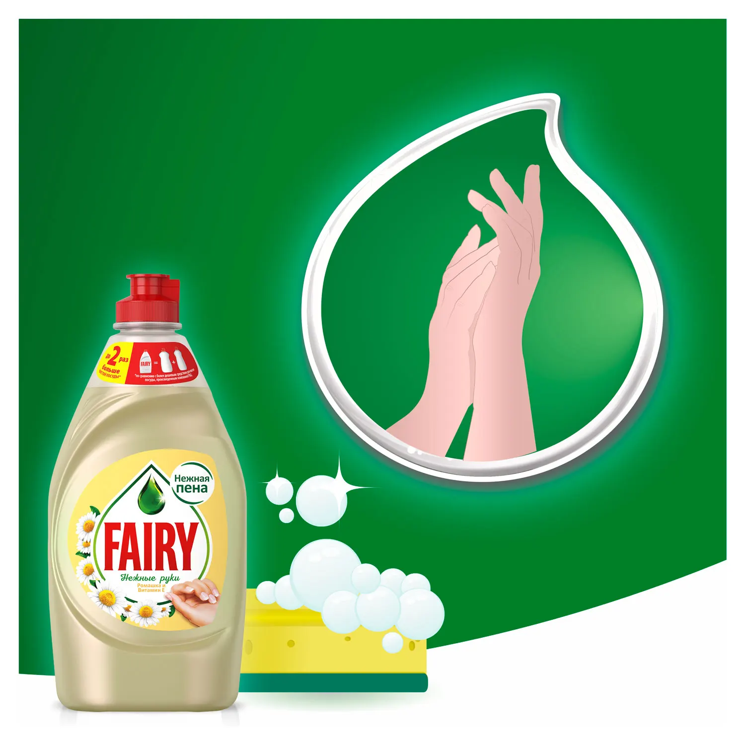 Линейка Fairy «Нежные руки» разработана совместно с дерматологами для сохранения нежности кожи Ваших рук. Концентрированная формула Fairy быстро расщепляет жир и обеспечивает идеальную чистоту посуды, в тоже время не провоцируя сухость кожи Ваших рук. Активные компоненты формулы настолько эффективны, что запросто растворяют жир даже в холодной воде. Выбирая Fairy, Вы так же экономите, так как всего одна капля средства позволяет отмыть до 2х раз больше посуды. Невзирая на мощь, Fairy — это безопасный продукт, который легко смывается водой и полностью соответствует ГОСТу РФ. Линейка «Нежные Ручки» доступна в ароматах «Ромашка и витамин Е», «Чайное дерево и мята» , «Розовый Жасмин и Алоэ Вера» и в упаковках объема 450 мл, 650 мл, 900 мл, 1.35л (эксклюзивно для аромата «Ромашка и витамин Е»). Преимущества: • Fairy «Нежные ручки» с эффектом 2-в-1: беспощаден к жиру, нежен к рукам • Fairy «Нежные ручки» отмывает до 2х раз больше посуды • Нежная пена делает средство еще более эффективным и экономичным • Средство доступно в различных ароматах: «Ромашка и витамин Е», «Чайное дерево и мята», «Розовый Жасмин и Алоэ Вера» • Моющее средство Fairy полностью смывается водой • Fairy содержит 100% биоразлагаемые компоненты