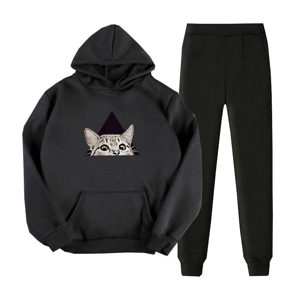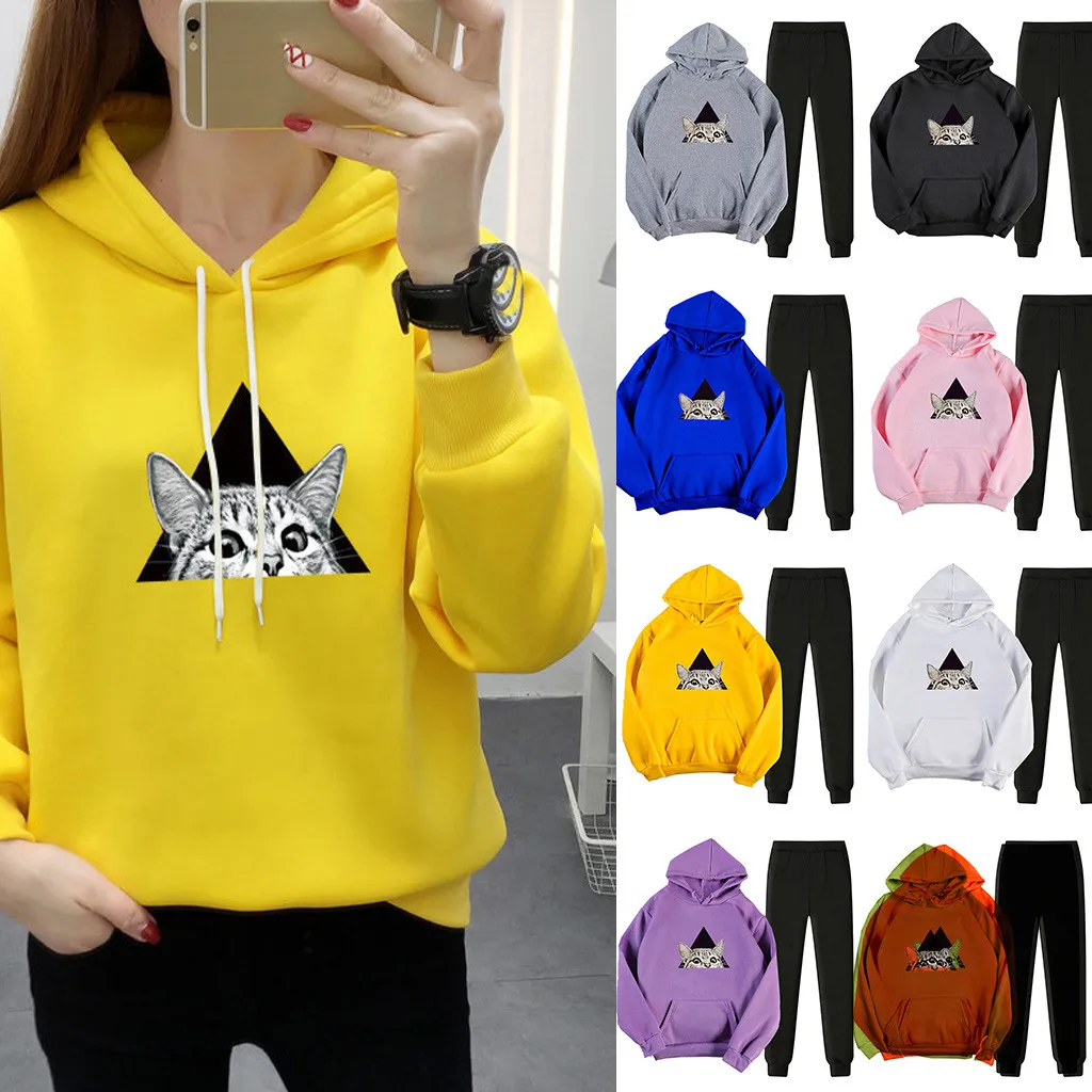 Женский Повседневный Спортивный костюм с длинными рукавами, толстовка с капюшоном и однотонные штаны, Комплекты Плюс, уличный тренировочный костюм для бега на осень