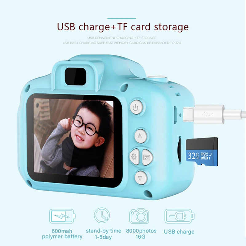 Эта детская камера-это цифровой продукт, специально разработанный для детей с уникальным внешним видом. Экологически чистый мягкий силиконовый чехол и изображение высокой четкости и видео.