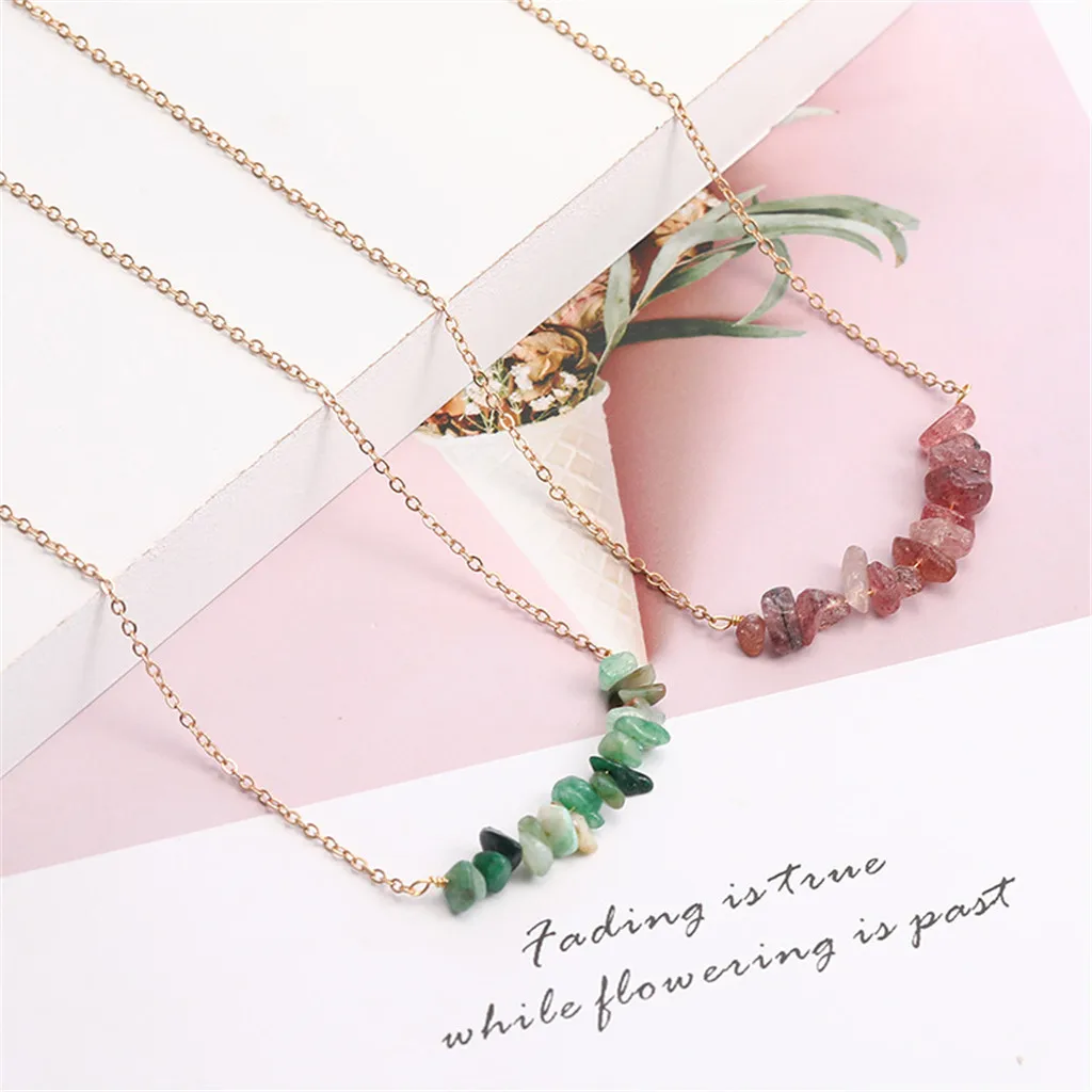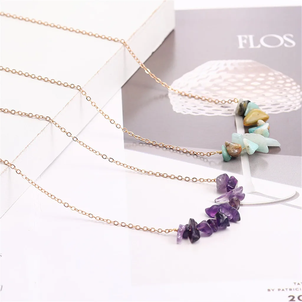 Голубой бирюзовый натуральный камень украшения неправильный гравий ожерелье ключицы цепь