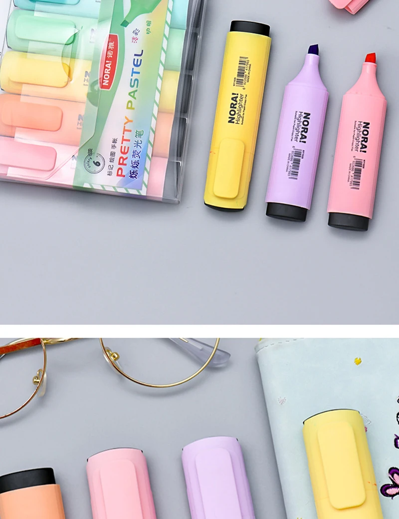 6 шт., маркеры высокой емкости, милые канцелярские принадлежности, материал, бумага для письма, школьные принадлежности для студентов, офиса Характеристики продукта: Название: для нанесения хайлайтера Цвет: 6 цветов, s Материал ручки: полипропилен Материал наконечника: волокно Длина ручки: 114 мм Количество упаковки: 6 шт./компл. Упаковочный материал: квадратная коробка из ПВХ